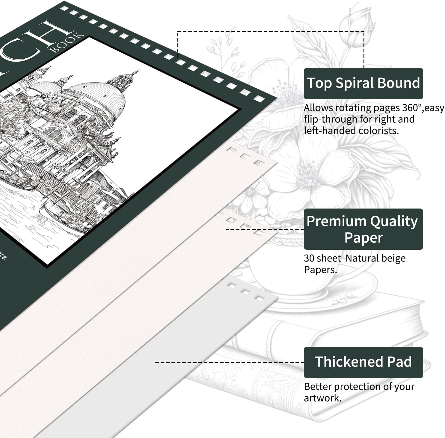 - Premium Paper Quality & Thickened Pad: We adopted 68lb/100gsm natural off white papers with perfect texture and smooth surface. Not worrying about your paintings fading or yellowing over time.The bottom is supported by thick cardboard, which it is perfect for all the sketching needs of the users. Provide a better drawing and writing experience.