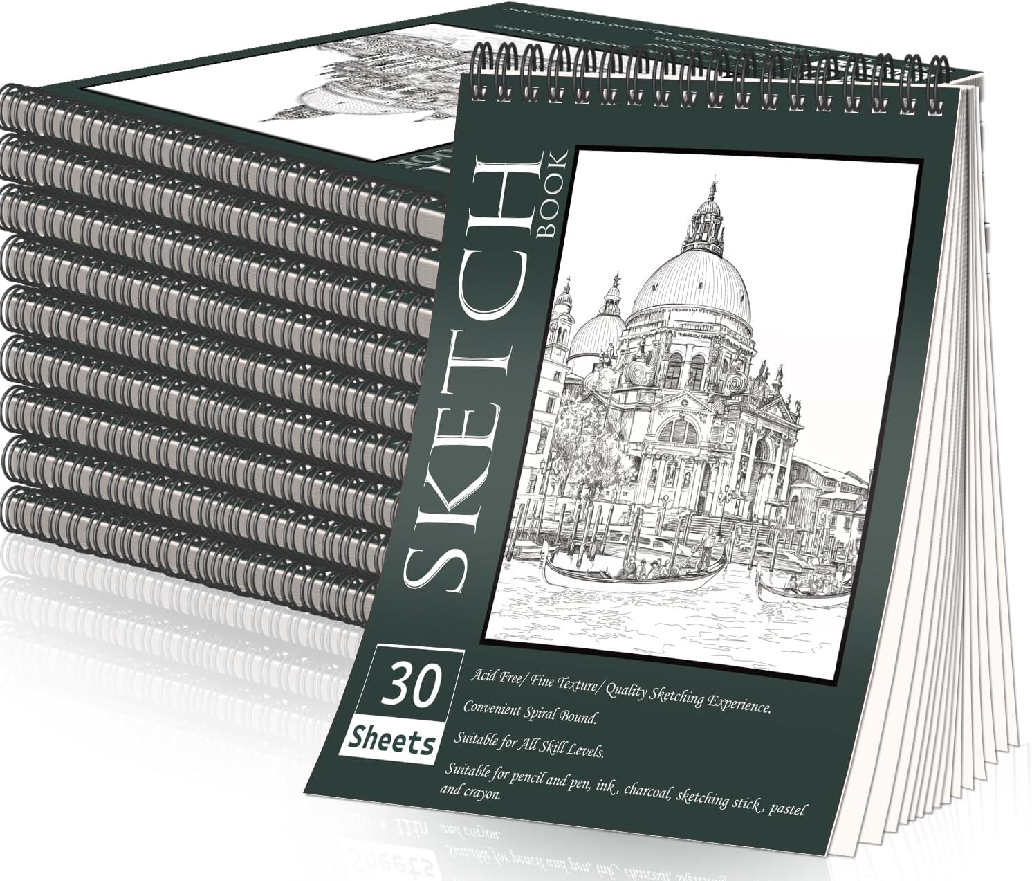 - Set of 10 Sketch Book: Include 10 sketchbooks in a set. Each sheet measures 8.5x11 inches which adopts 68lb/100gsm paper. Each sketch book come up with 30 sheets, totaling 300 sheets. Adequate quantity allows you to share with your friends and colleagues.