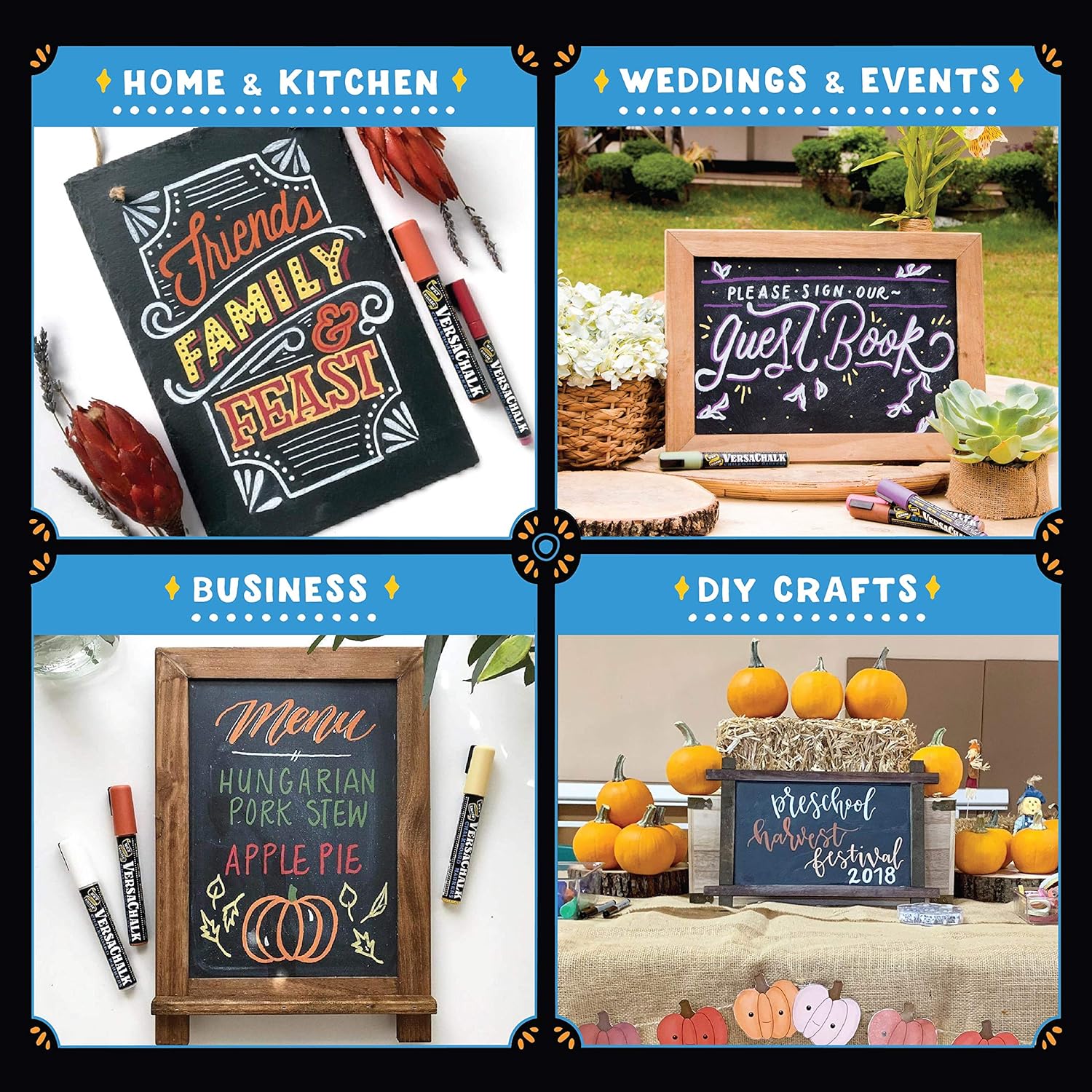 - Quick and Easy Cleanup: These markers are fully erasable and washable. Simply spray water or use a damp cloth for hassle-free cleaning. For stain-free and no-ghosting results, use the VersaChalk Cleaning Solution Kit.
