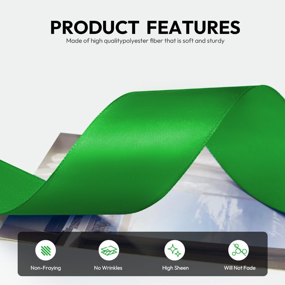 - 【High Quality】: Our fabric satin ribbon is made of 100% high-quality polyester. The single face ribbon for gift wrapping is Green color and has smooth texture which is easy to cut and use.