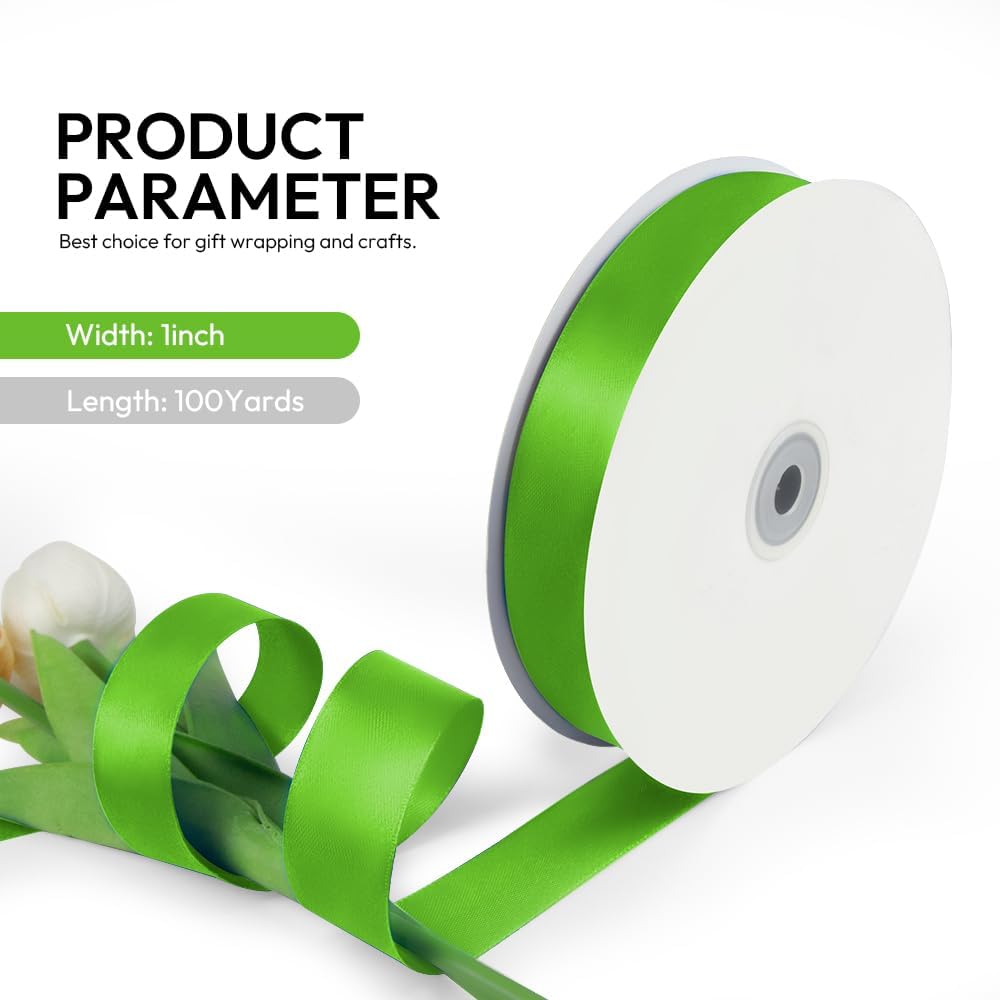 - 【High Quality】: Our fabric satin ribbon is made of 100% high-quality polyester. The single face ribbon for gift wrapping is Apple Green color and has smooth texture which is easy to cut and use.