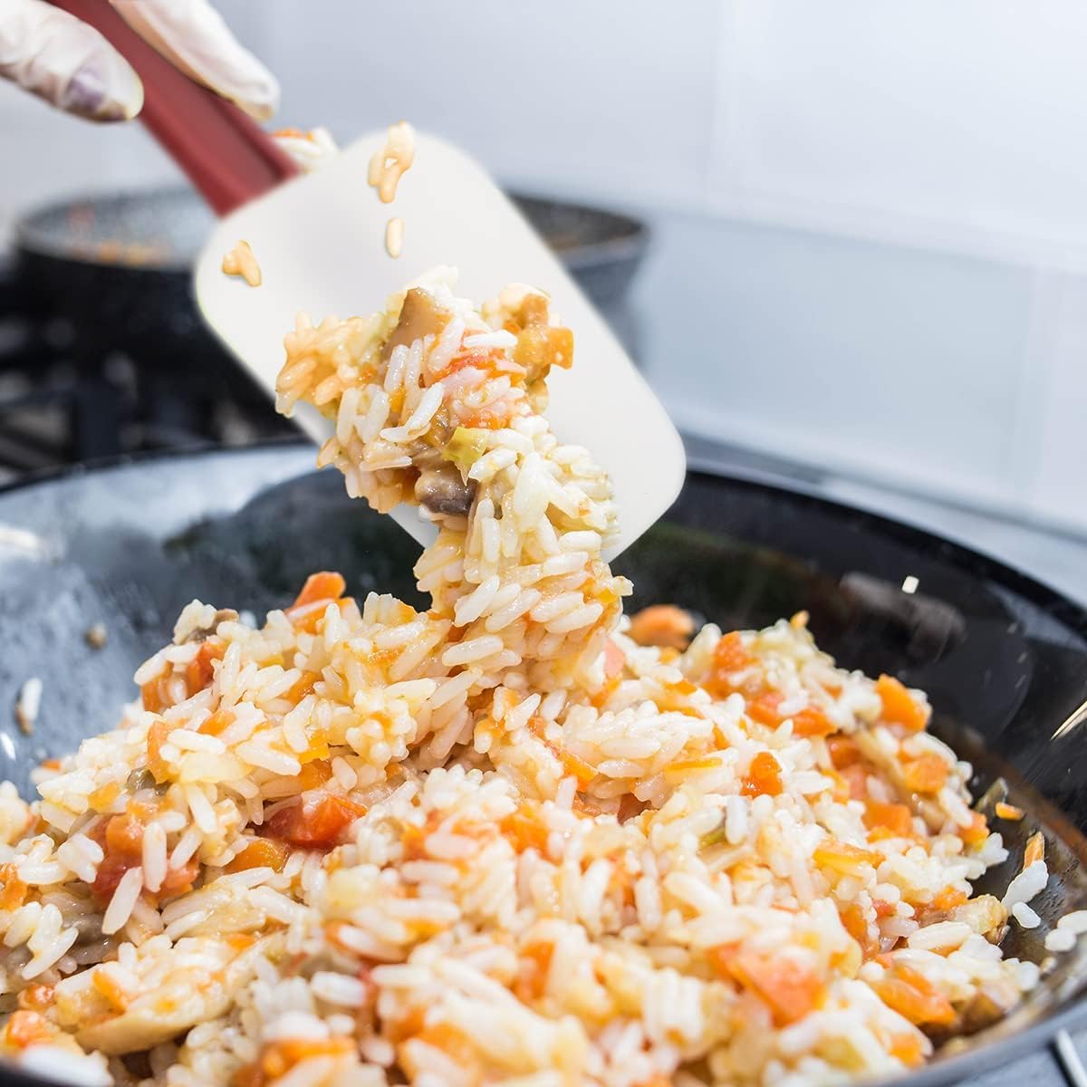 - SANITARY & RELIABLE: Nonstick and easy to clean, these silicone spoonulas are not going to stain or get rusted like metal ones. There will be no staining, no odor retention, no flaking, peeling, or breaking of any sort. Furthermore, of one piece design, this commercial spatula set is sanitary, and the head will not pop off.