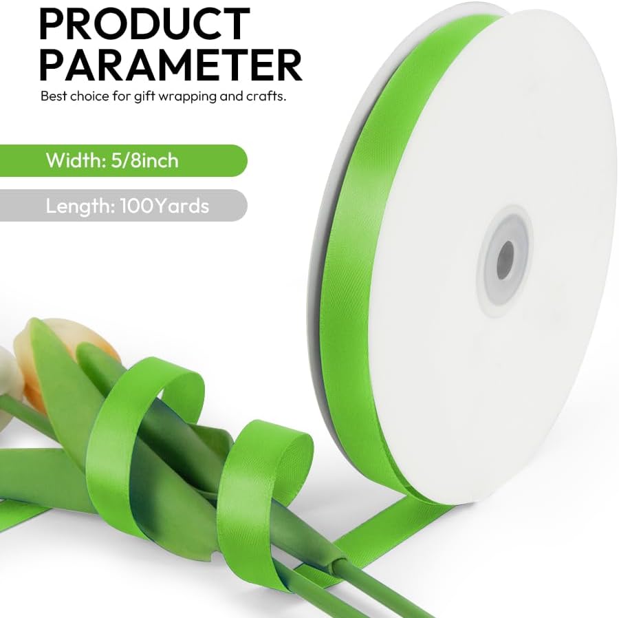 5/8 Inch 100 Yards Satin Ribbon Apple Green, Solid Color Fabric Ribbon for Gift Wrapping, Wedding, Polyester Gift Ribbon for Birthday Party Decoration, Craft, Hair, Floral, Sewing