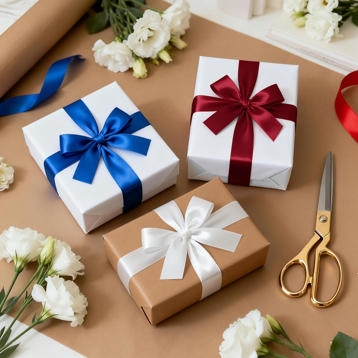 - 【Gift Wrapping Accessories】: The satin ribbon for wrapping presents is constructed with dense and sturdy weave which can help you accomplish multiple projects for different festival events, such as Valentine's Day, St.Patrick's Day, Easter Day, Christmas, Thanksgiving, Halloween, Mother’s & Father’s Day, Children’s Day and more.