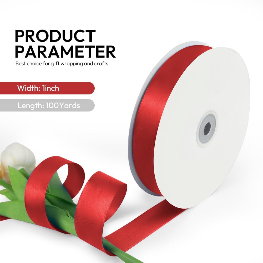 - 【Ribbon Dimensions】: Each satin ribbon spool is 1 inch width with total length is 100 yards, which has enough amount for your daily need. The gift wrapping ribbon can be easily stored and the spool is space-saving.