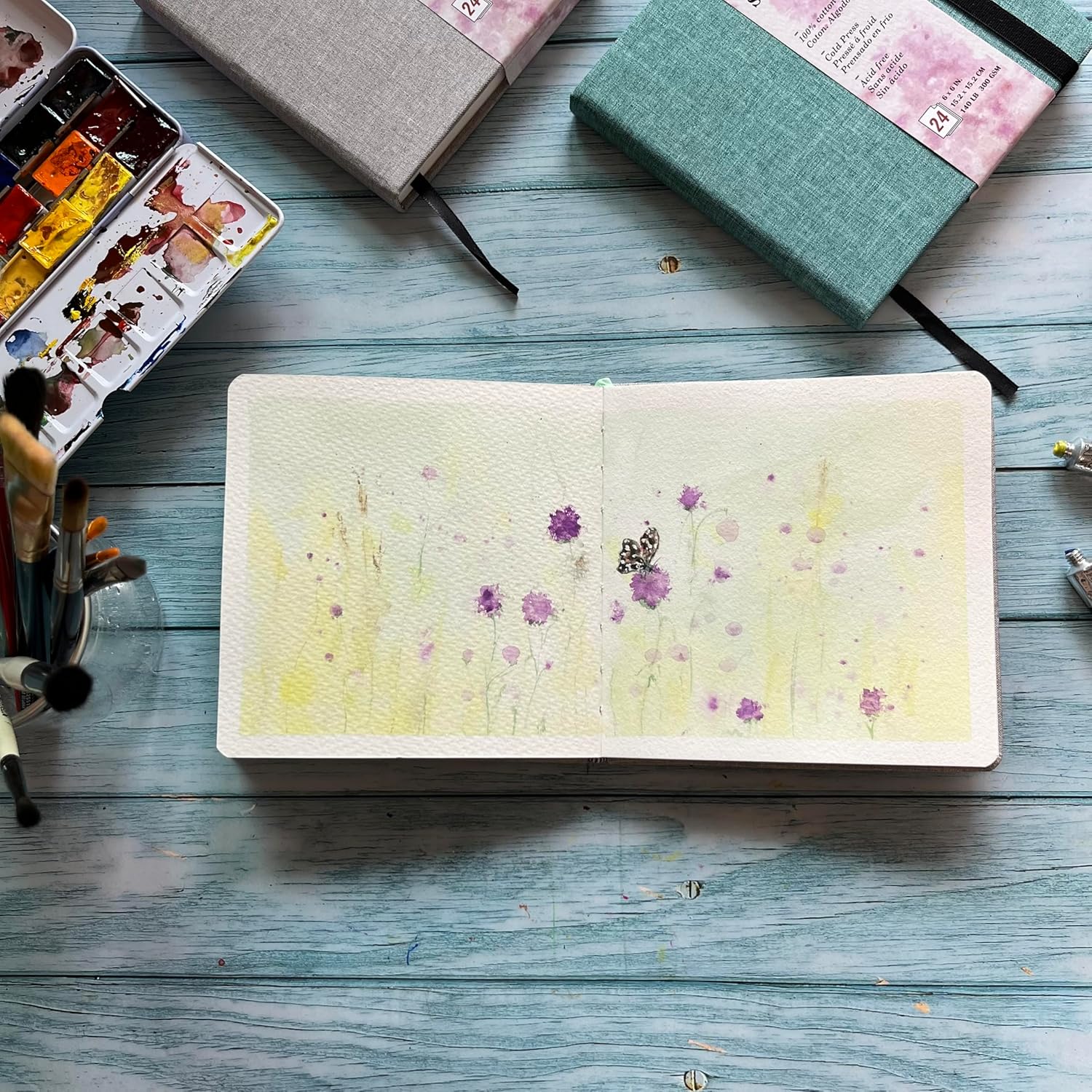 tumuarta Watercolor Journal, 8.25x5.5, 140 LB, 300 GSM, Cotton Paper, Cold Press, 24 Sheets, 48 Pages, Watercolor Paper Sketchbooks for Use As Travel Notebook and Mixed Media Pad