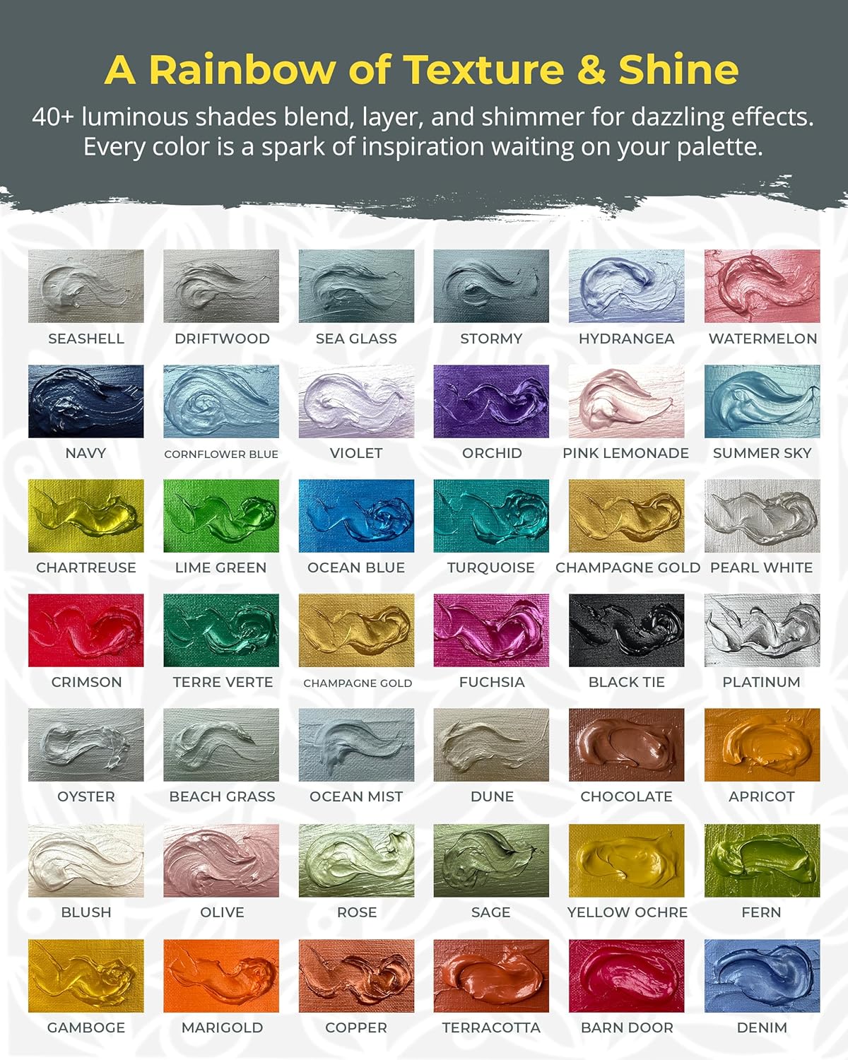 - LUXE TEXTURE THAT’S FUN TO USEFeels like frosting, spreads like butter. Use with a palette knife, brush, or fingers. Cleans up with water and dries in under 30 minutes.