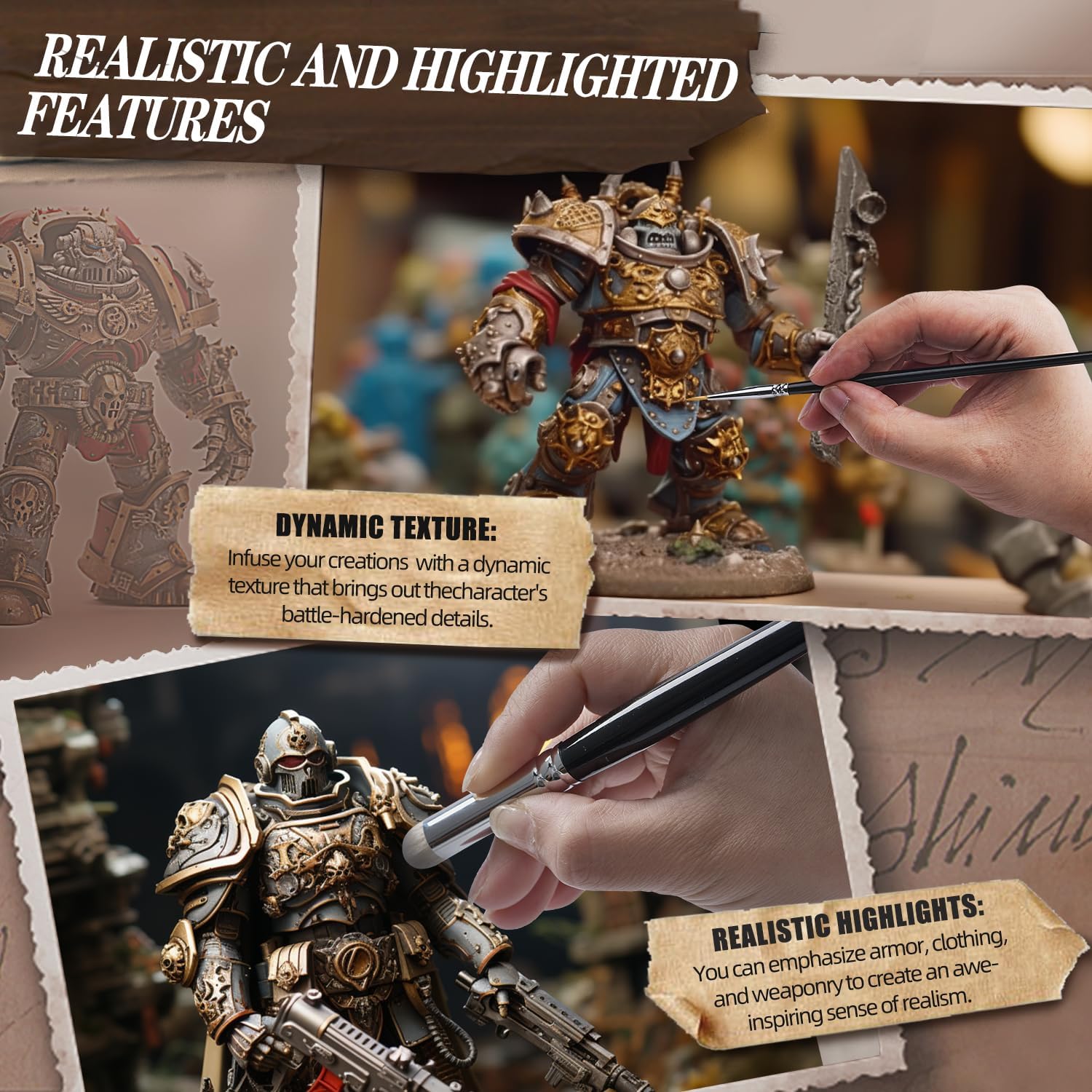 - 【Versatility】The combination of Dry Brush and Miniature Paint Brushes allows you to seamlessly transition between bold, textured strokes and intricate detailing. The interplay between bold, textured elements and refined, precise lines adds visual interest and dimension to your artwork.