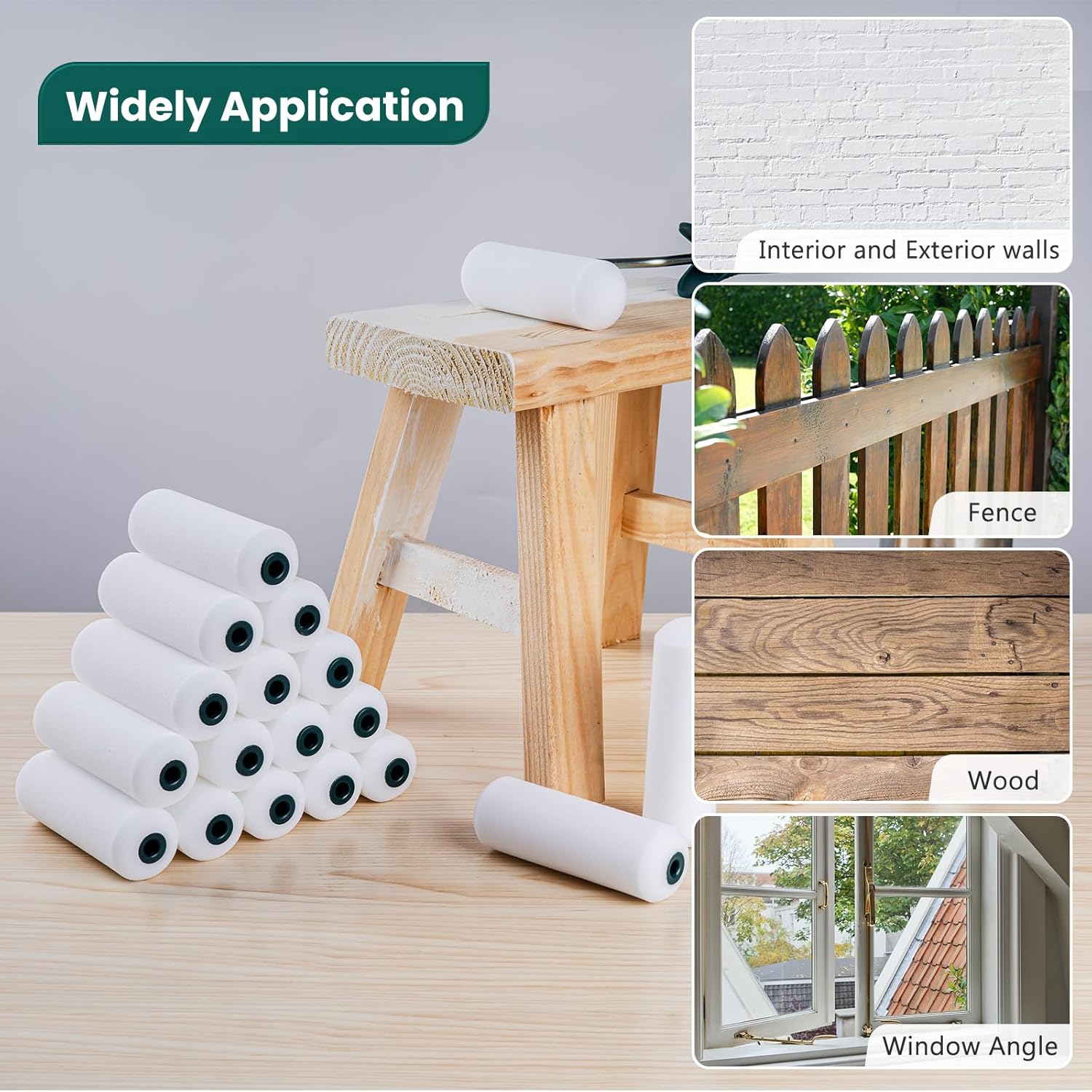- Versatile Applications: The 4 inch foam roller replacement kit is suitable for various painting projects. Whether you are painting walls, ceilings, furniture, or other surfaces, it meets your painting needs, providing you with efficient and professional painting experience.