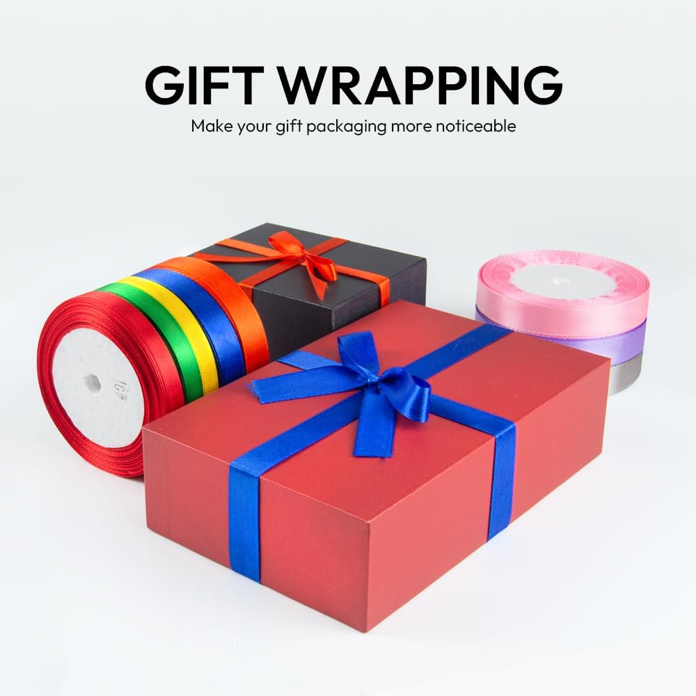 - 【Ribbon Dimensions】: Each satin ribbon spool is 5/8 inch width with total length is 25 yards. The gift wrapping ribbon can be easily stored and the spool is space-saving.