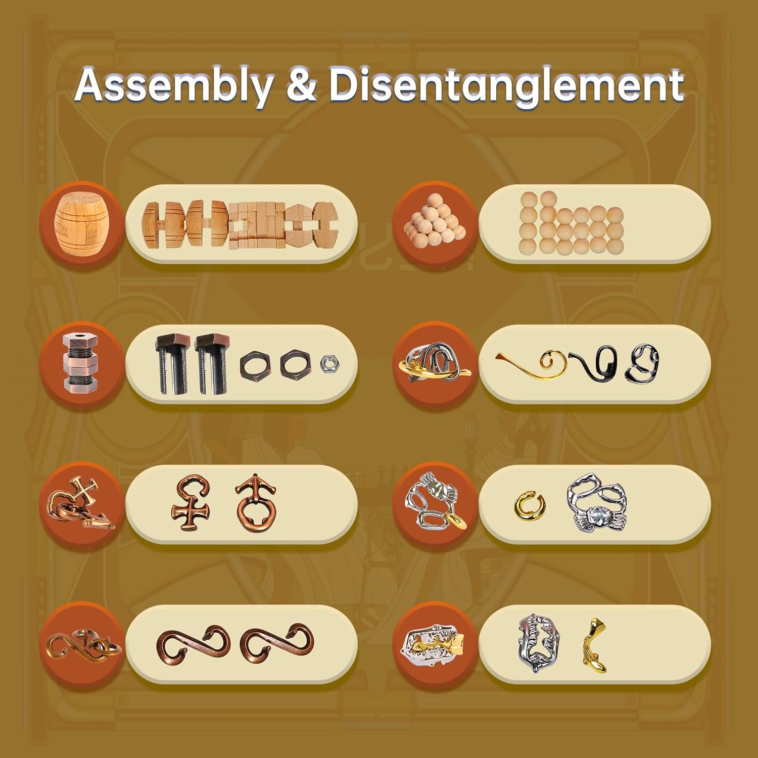 - Brain teasers benefit, engaging and fun for most ages, educational puzzle toys set will challenge your intellect by stimulating amazing creativity, and understand the inter structure. Mind will be sharpened enough to develop their problem-solving capacity through reasoning, development of mental stamina, and boosting their self-confidence, improve IQ and EQ.