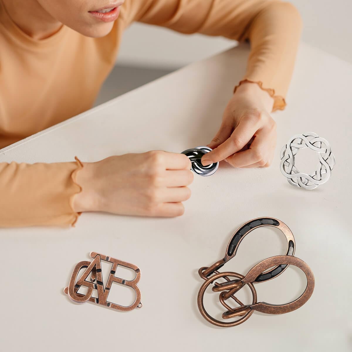 - Quality Metal Toys: Puzzles are made of durable metal with smooth rounded edges. Comes with a beautiful storage box and instructions, compact and easy to carry.