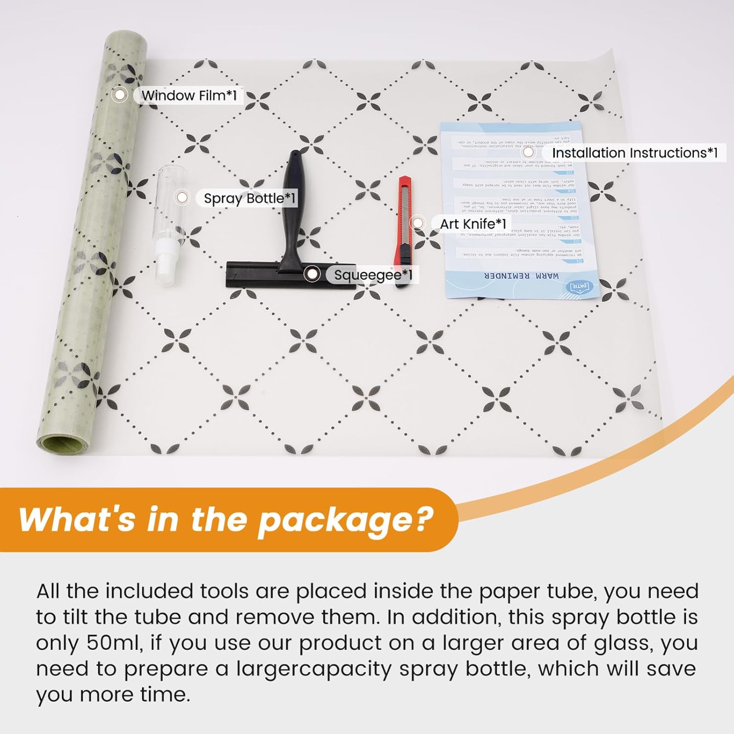 - The package comes with 3 pieces of installation tools, allowing you to easily complete the installation of privacy window film