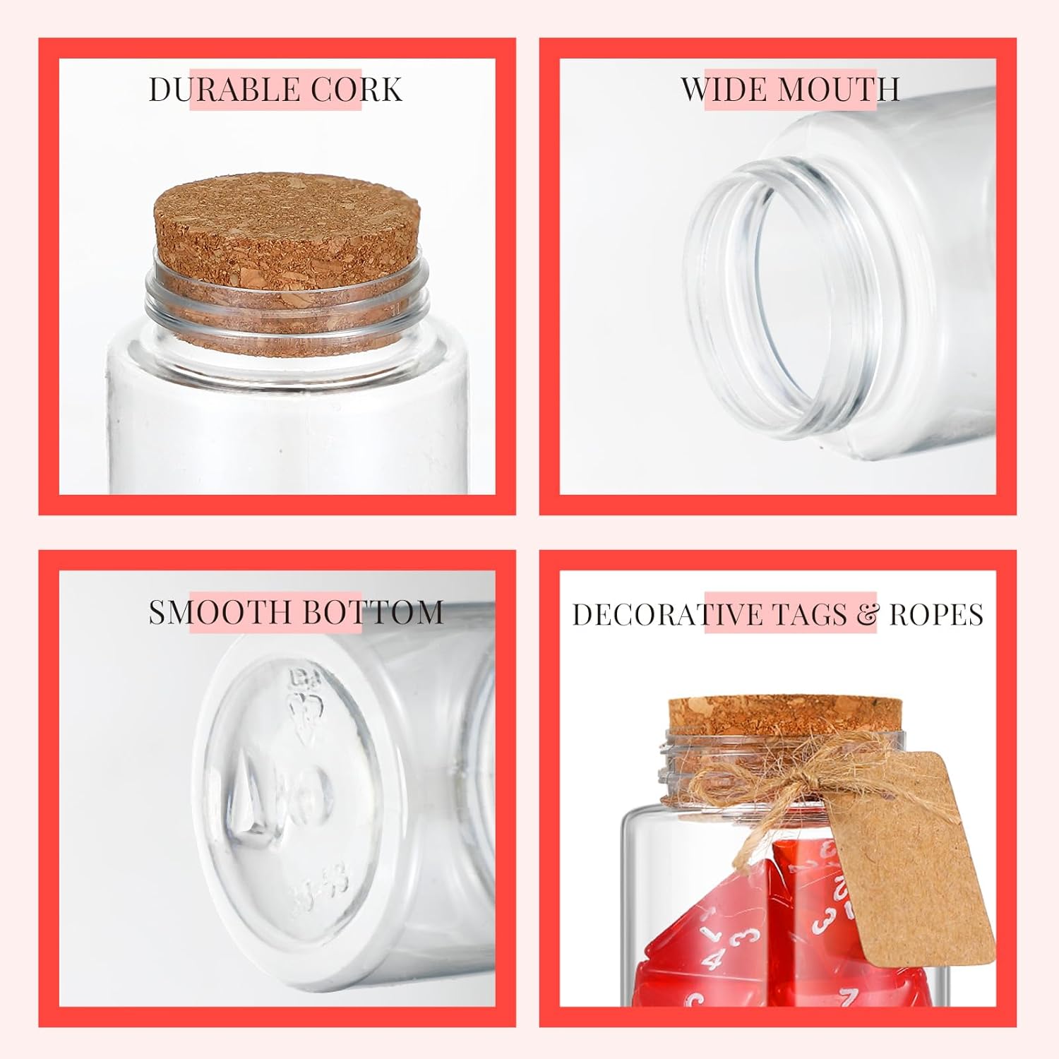 Wettarn 120 Pcs Transparent Red D4 Dice6 Pcs Pot Bottles Plastic Favor Jars with Cork Lids Healing Potion Bottles Polyhedral Dice Set for Party Favors Table Games(Round Style)