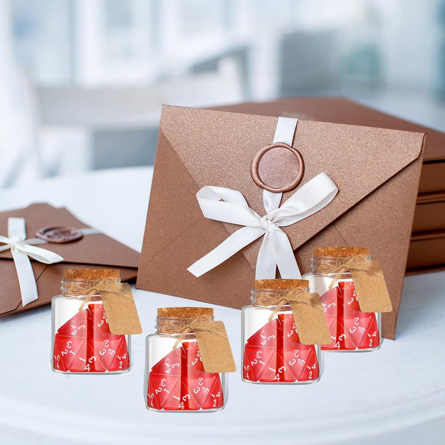 - What You Will Get: this package includes 120 pieces of red D4 dice, 6 pieces of potion bottle with cork lids, 6 pieces of label tags, and 1 roll of burlap ribbon (measuring about 32.81 ft/ 10 m); These additional accessories enhance the visual appeal and versatility of the bottles