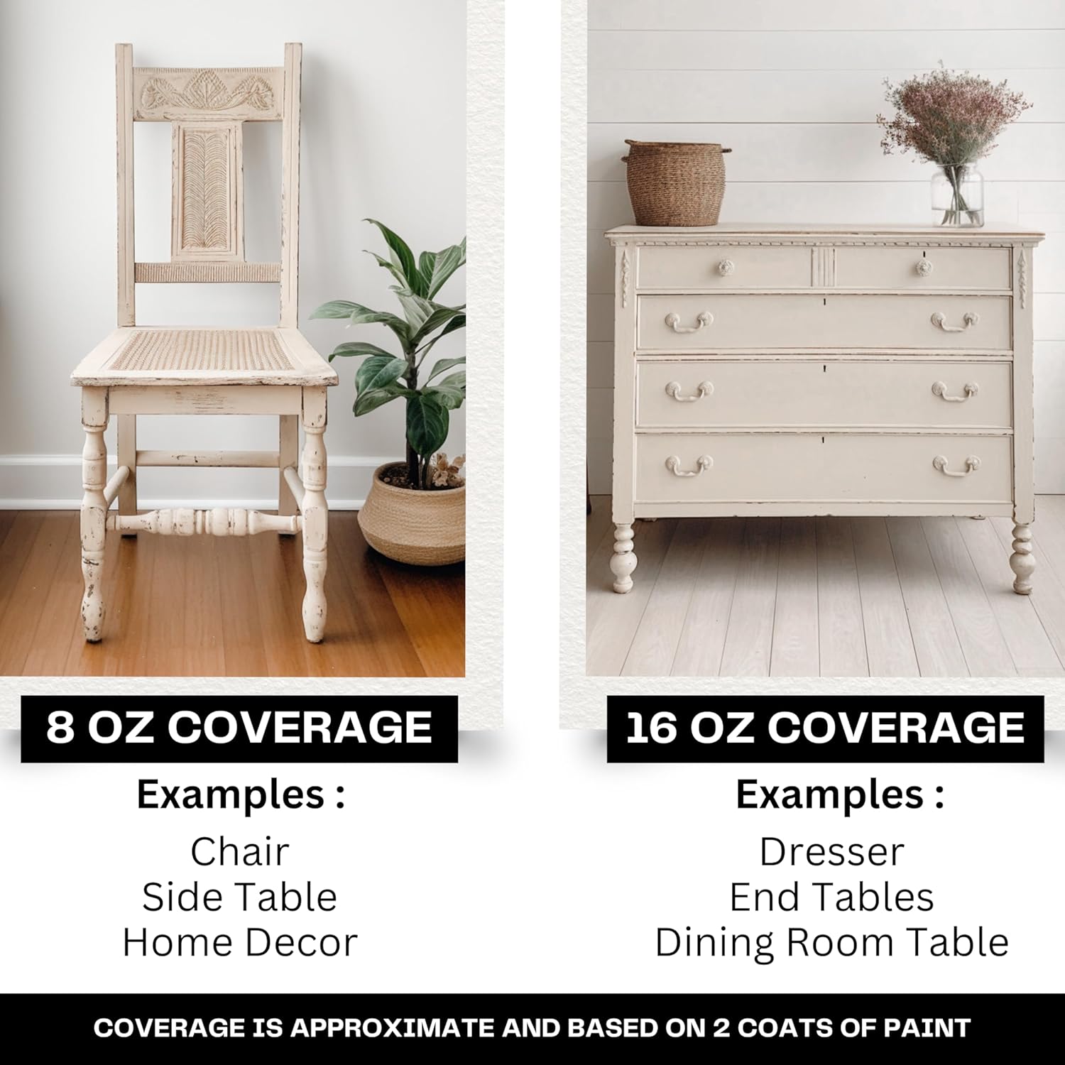 - Unmatched Versatility: Our Premium Chalk Paint for Furniture stands out as the ultimate choice when looking for paint for dressers, paint for tables, paint for desks or paint for crafts and home decor. Our water-based formula has unlimited possibilities and adheres to most surfaces. The consistency and texture give your project a vintage or country chic painted look. Our chalk paint formula is ultra-low VOC, Reconstitutes with water, and blends beautifully and has very little odor.