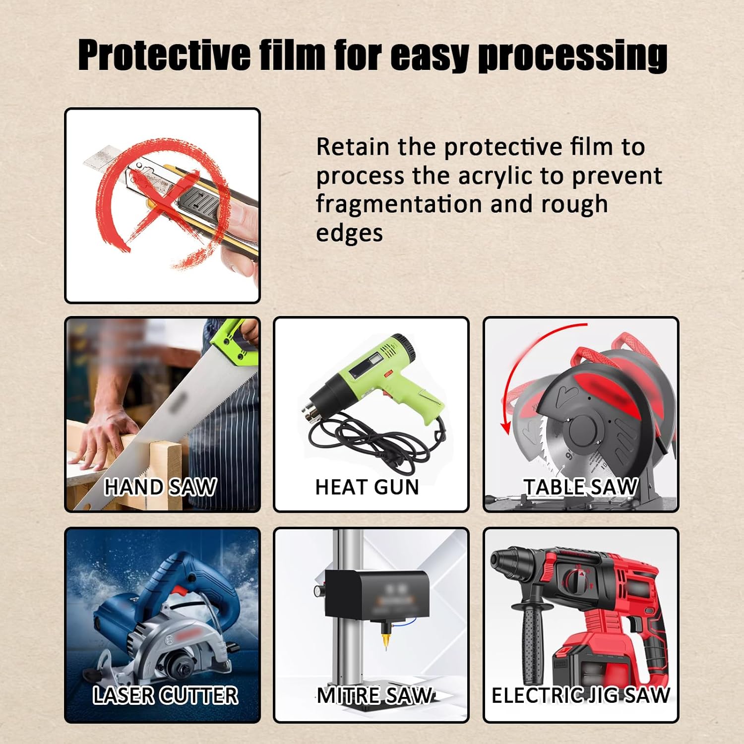 - Acrylic Sheet: This 2-piece set includes black acrylic sheets that are perfect for various applications. Acrylic is a lightweight and durable material with Smooth surface, making it ideal for signage, handcrafts, photography, painting, and more.