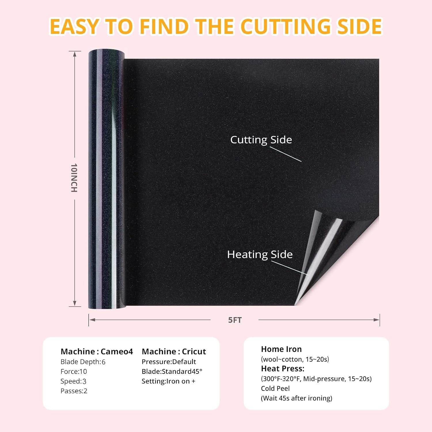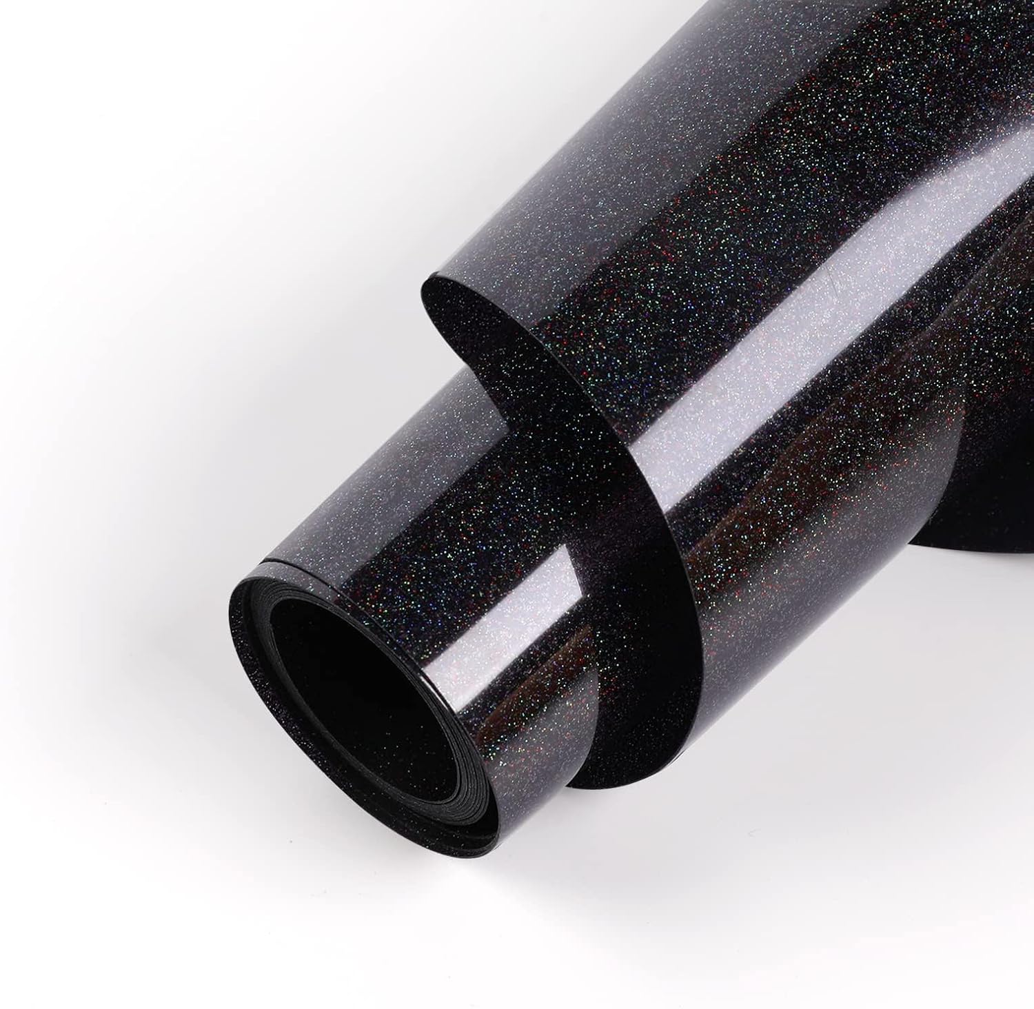 - 【Sparkle & No Residue】Our Black glitter htv vinyl rolls are specially processed to give your designs a shinier look. Additionally, all of our glitters are embedded in vinyl and won't leave residues when weeding and won't fall from your project. Novices or professionals, big or small projects, this Black glitter iron on vinyl roll is a great choice for you!