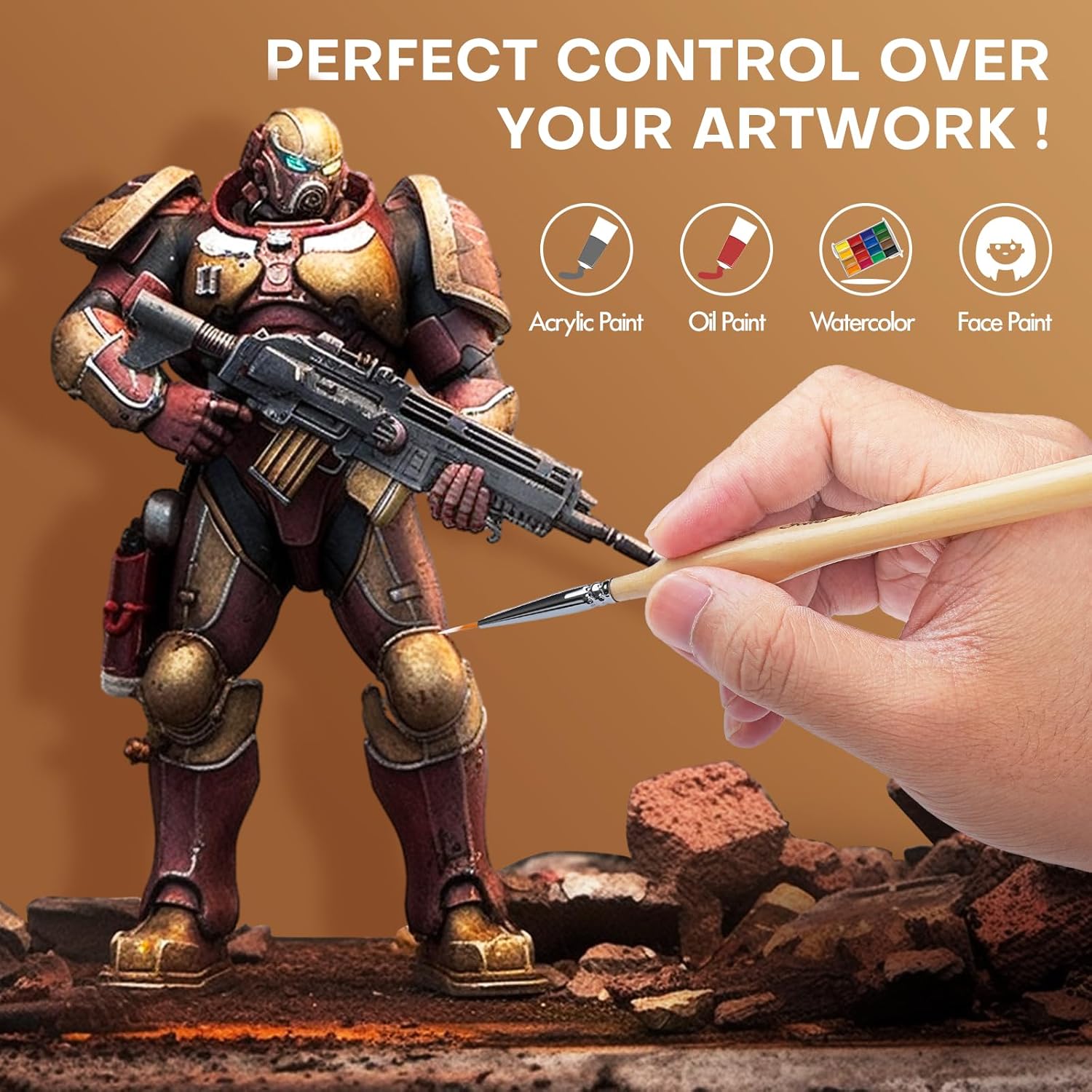 - IDEAL FOR PRECISION PAINTING: Miniature brushes are perfect for miniatures figurines, ultra fine detail painting, army figures. You can use detail brush set as paint by number brushes, hobby paint brushes, plastic model paint brushes, express yourself through any creation and craft! The mini paintbrushes are perfect present for your loved one or a treat to yourself !