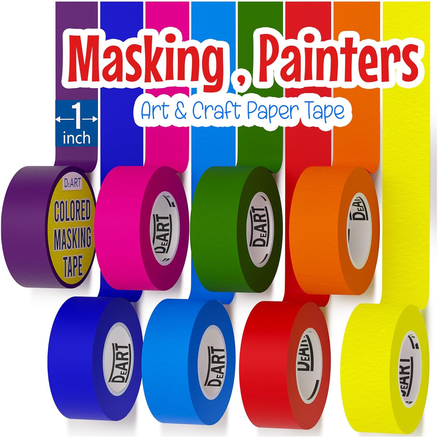 8X Colored Masking Tape, 33 Ft x 1 inch Colored Painters Tape for Arts & Crafts Labeling or Coding, Education Supplies & Craft Supplies Color Tape Rolls, Colorful Masking Craft Tape, Drafting Tape