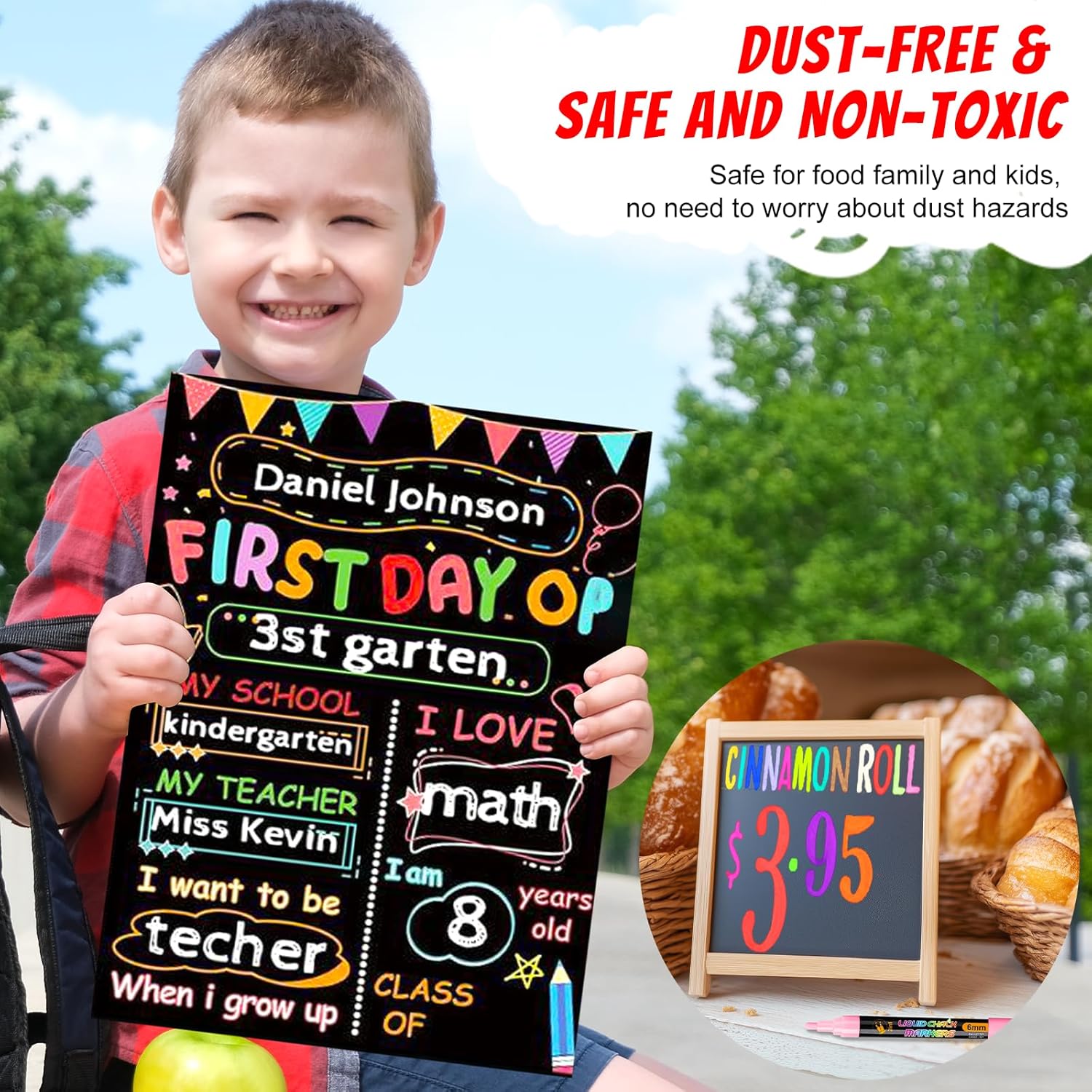 - SAFE AND NON-TOXIC: The water-based ink of these liquid chalk markers ensures easy usage without releasing any pungent odor. No matter if you're a teacher, mom, student, art enthusiast, or own a bistro or coffee shop, these chalks offer a comfortable experience. Ideal for everyone!