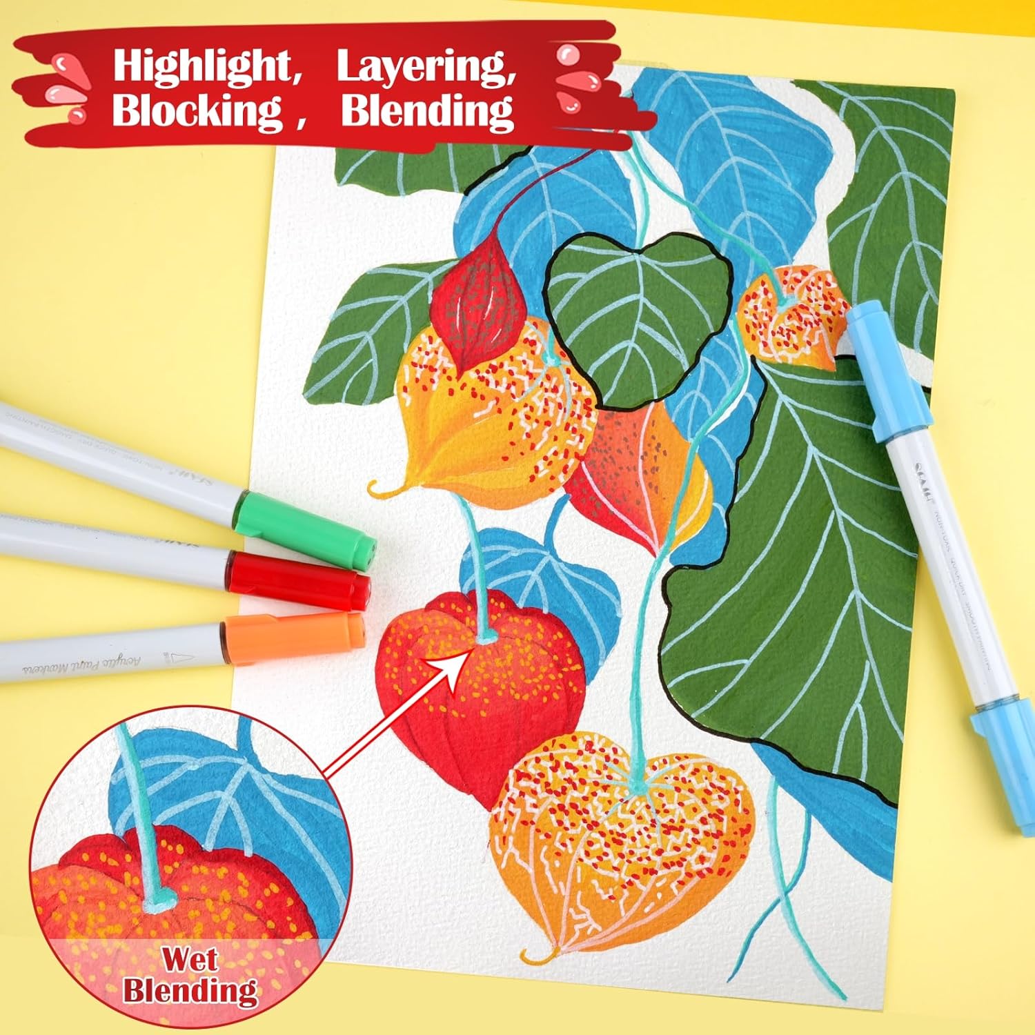 SFAIH Halloween Gifts Acrylic Paint Markers, 36 Colors Dual Tips Acrylic Brush Markers With Chisel Tip, Automatic Ink Control, Ultra-High Coverage, No Bleed Ink, Art Supplies for Rock, Canvas, Fabric