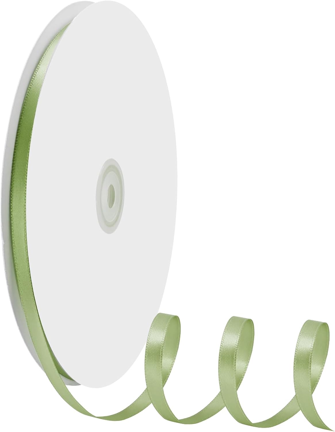 1/4" X 100 Yards Moss Satin Thin Ribbon Solid Color Double Faced Ribbons Perfect for Crafts Wedding Decor Bow Making Arts Sewing and More