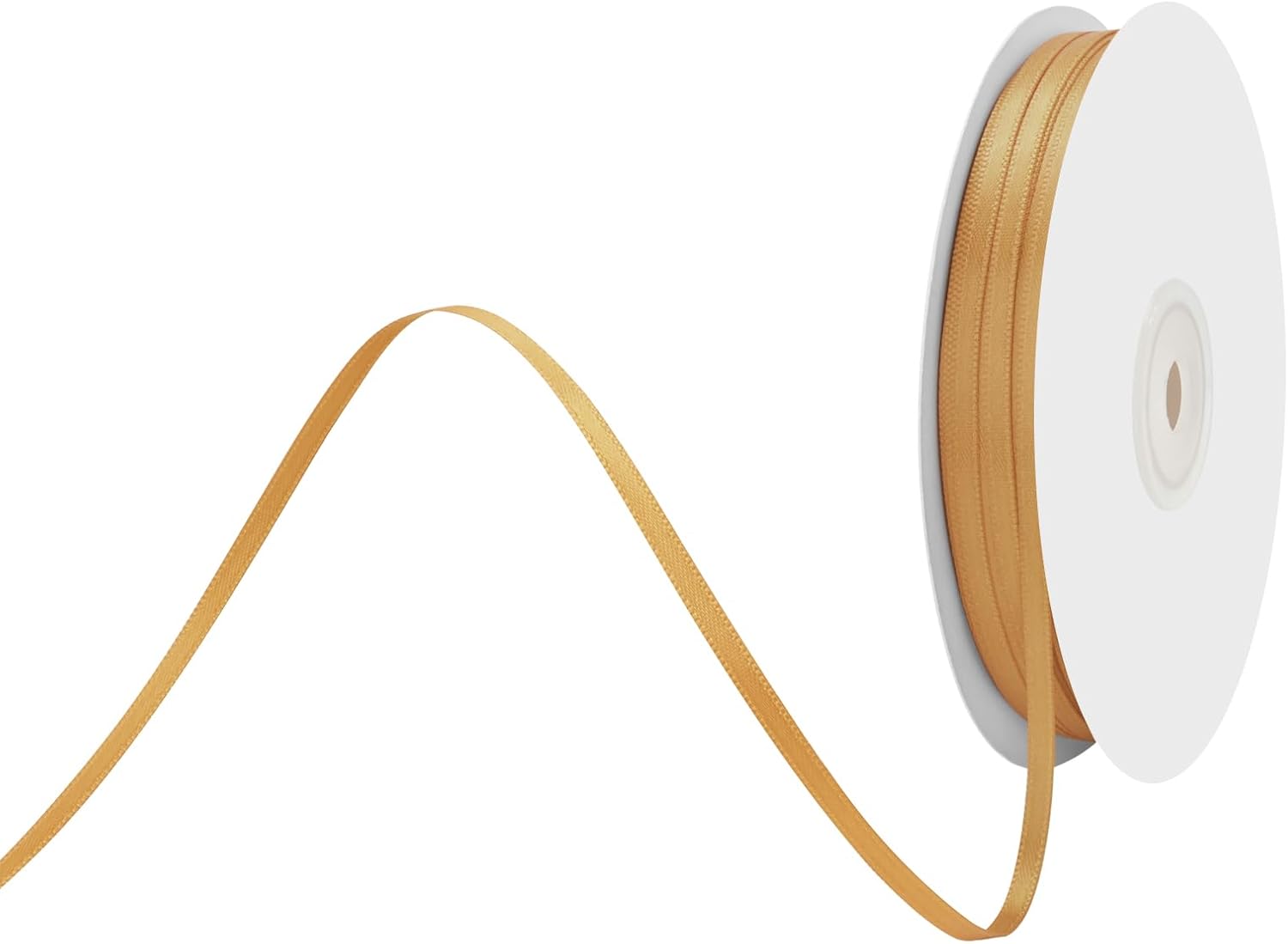 1/8" X 100 Yards Old Gold Satin Thin Ribbon Solid Color Double Faced Ribbons Perfect for Crafts Wedding Decor Bow Making Arts Sewing and More