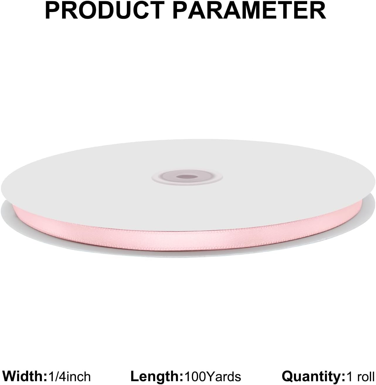 - 【Lt Pink satin ribbon】 Double face satin ribbon total 100 yards, 1/4"inch in width.Quantity can meet your daily needs well.
