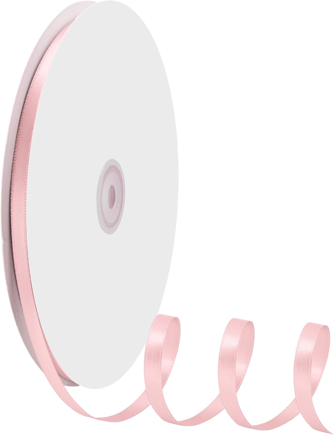 1/4" X 100 Yards Lt Pink Satin Thin Ribbon Solid Color Double Faced Ribbons Perfect for Crafts Wedding Decor Bow Making Arts Sewing and More