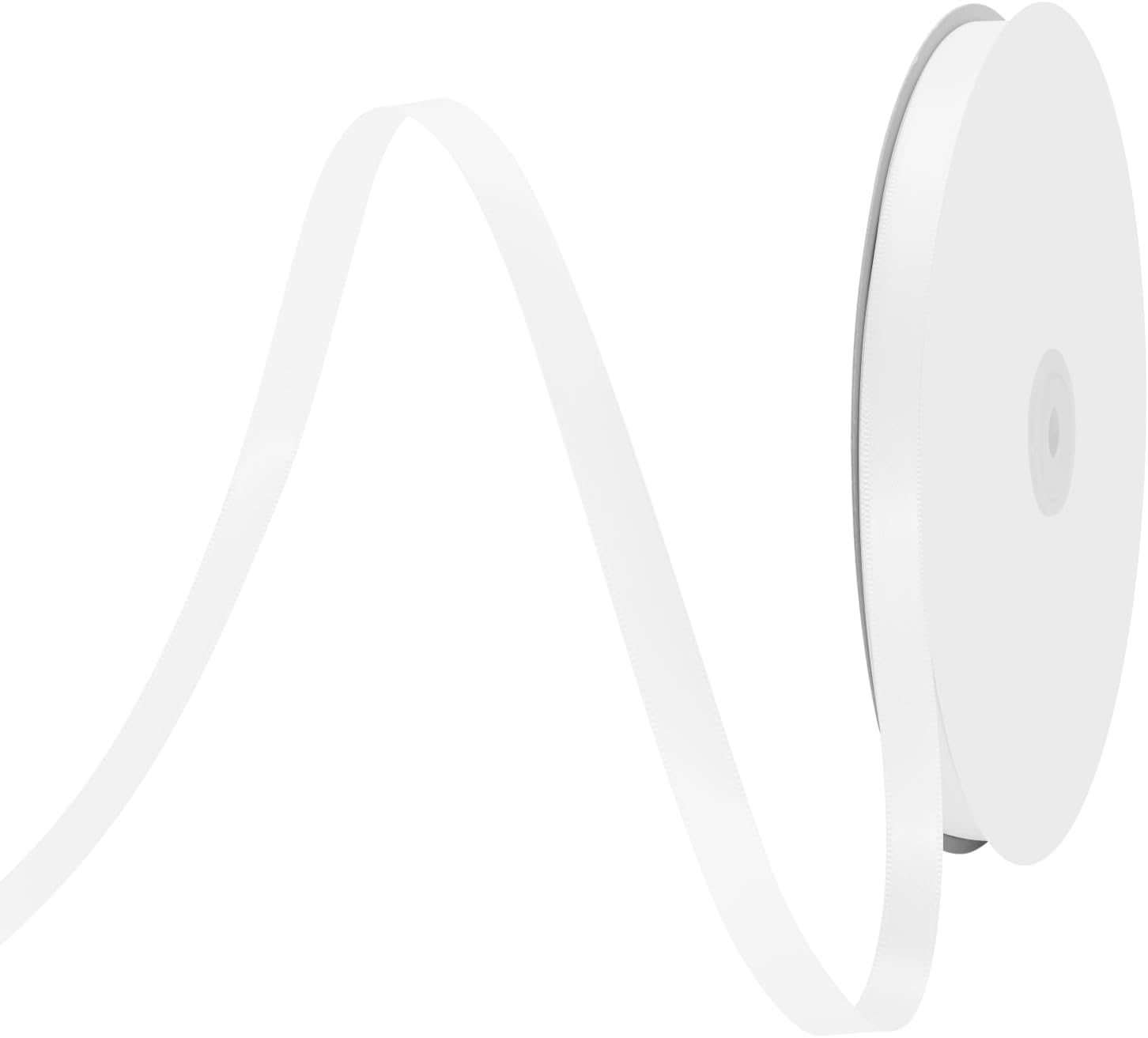 3/8" X 100 Yards White Satin Thin Ribbon Solid Color Double Faced Ribbons Perfect for Crafts Wedding Decor Bow Making Arts Sewing and More
