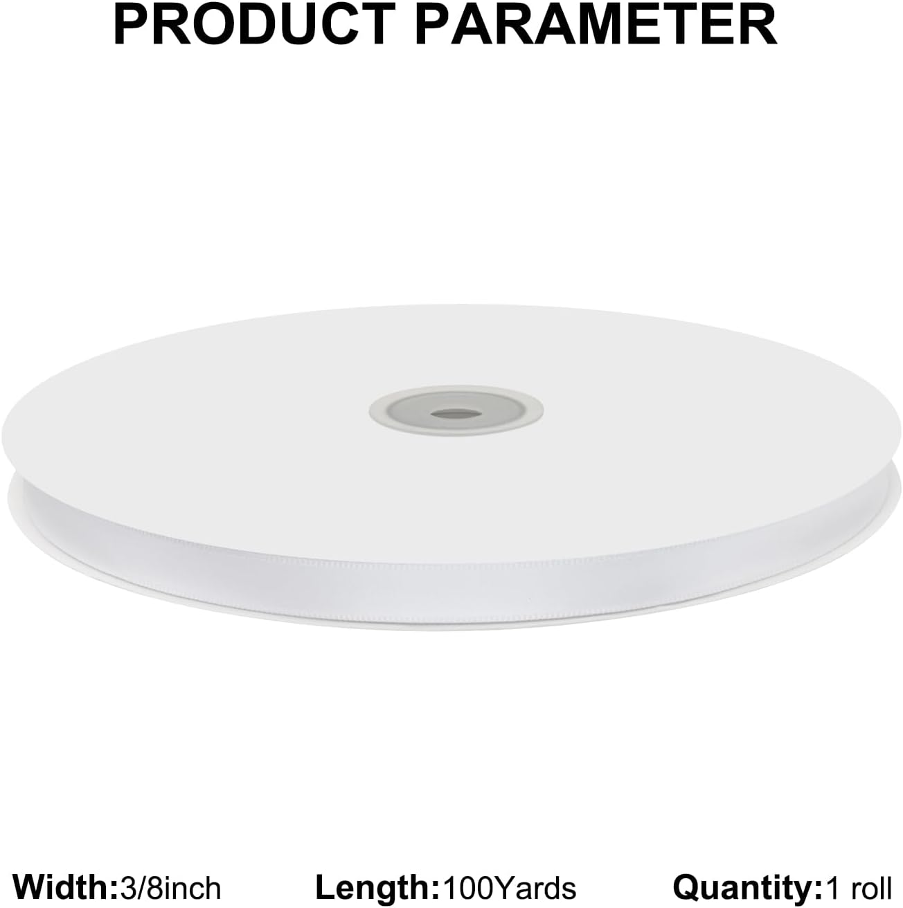 - 【White satin ribbon】 Double face satin ribbon total 100 yards, 3/8"inch in width.Quantity can meet your daily needs well.