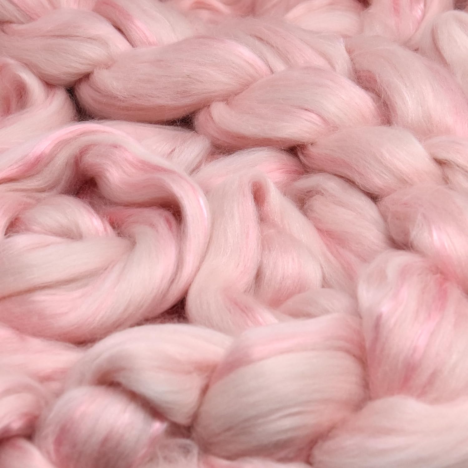 Merino Silk Luxe Tonal Designer Blend. Superfine Merino, Mulberry Silk, Tussah Silk. Top Roving for Spinning or Felting. Fleur de Rose 4oz