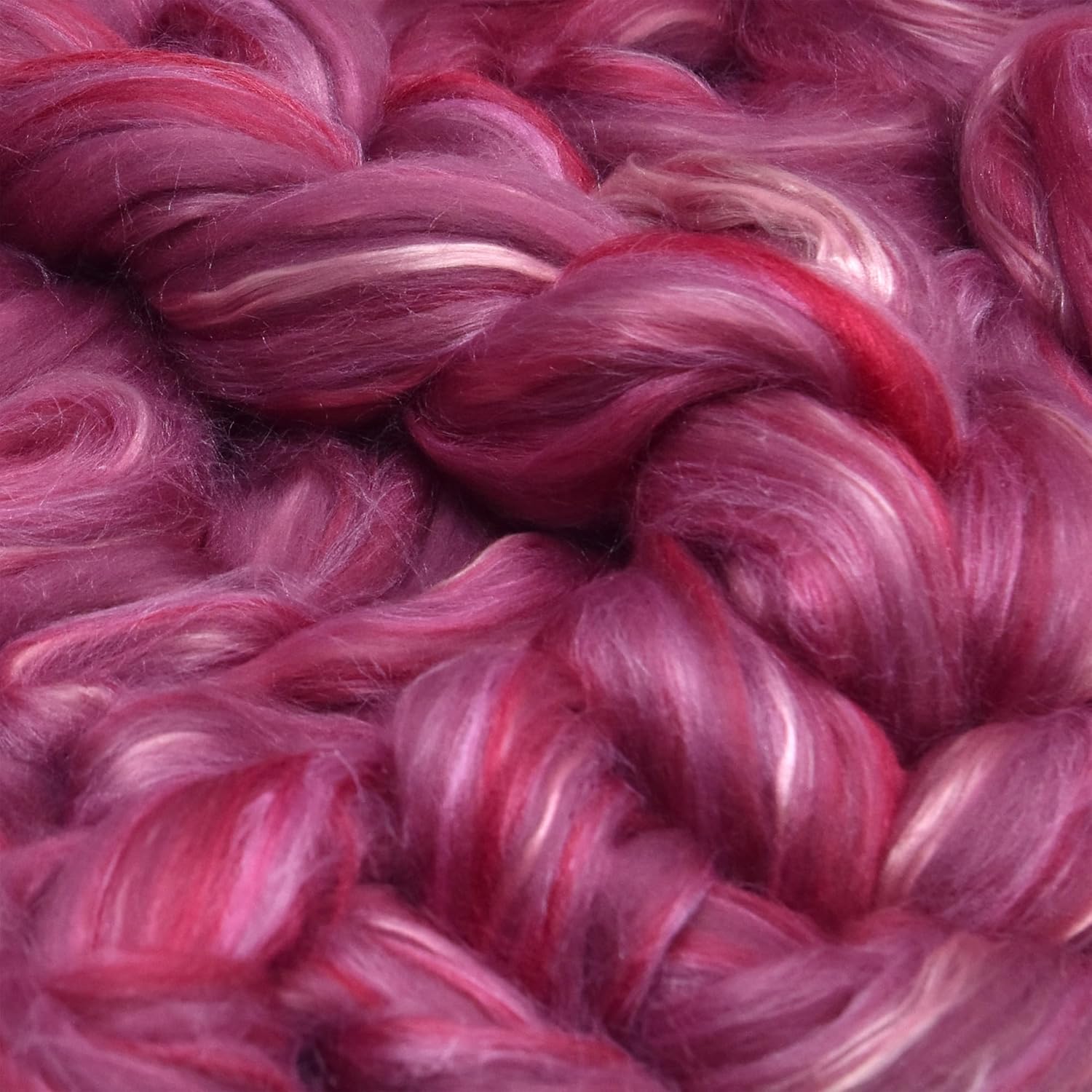 Merino Silk Luxe Tonal Designer Blend. Superfine Merino, Mulberry Silk, Tussah Silk. Top Roving for Spinning or Felting. Majestic Plum 4oz