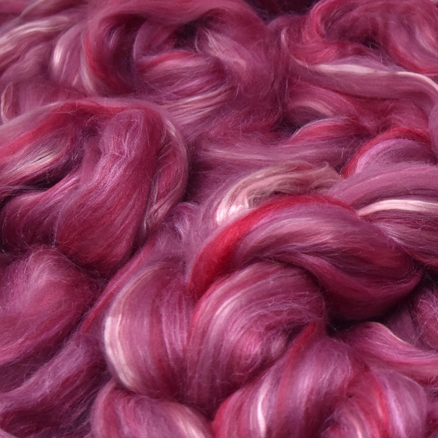 Merino Silk Luxe Tonal Designer Blend. Superfine Merino, Mulberry Silk, Tussah Silk. Top Roving for Spinning or Felting. Majestic Plum 1oz