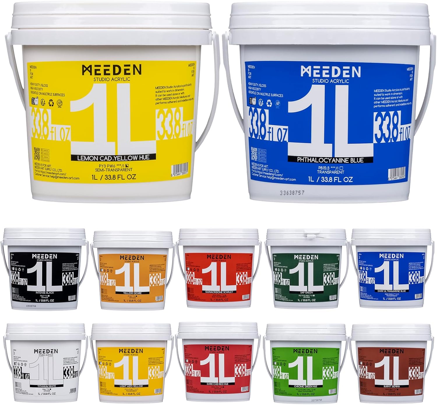 - STANDOUT ACRYLIC FOR STUDIO: Dive into the world of acrylic art with MEEDEN's 1L High Gloss Acrylic Paint. This heavy-body paste delivers highly pigmented, oil-like textures to create vivid, stand-up effects, making your artwork stand out.