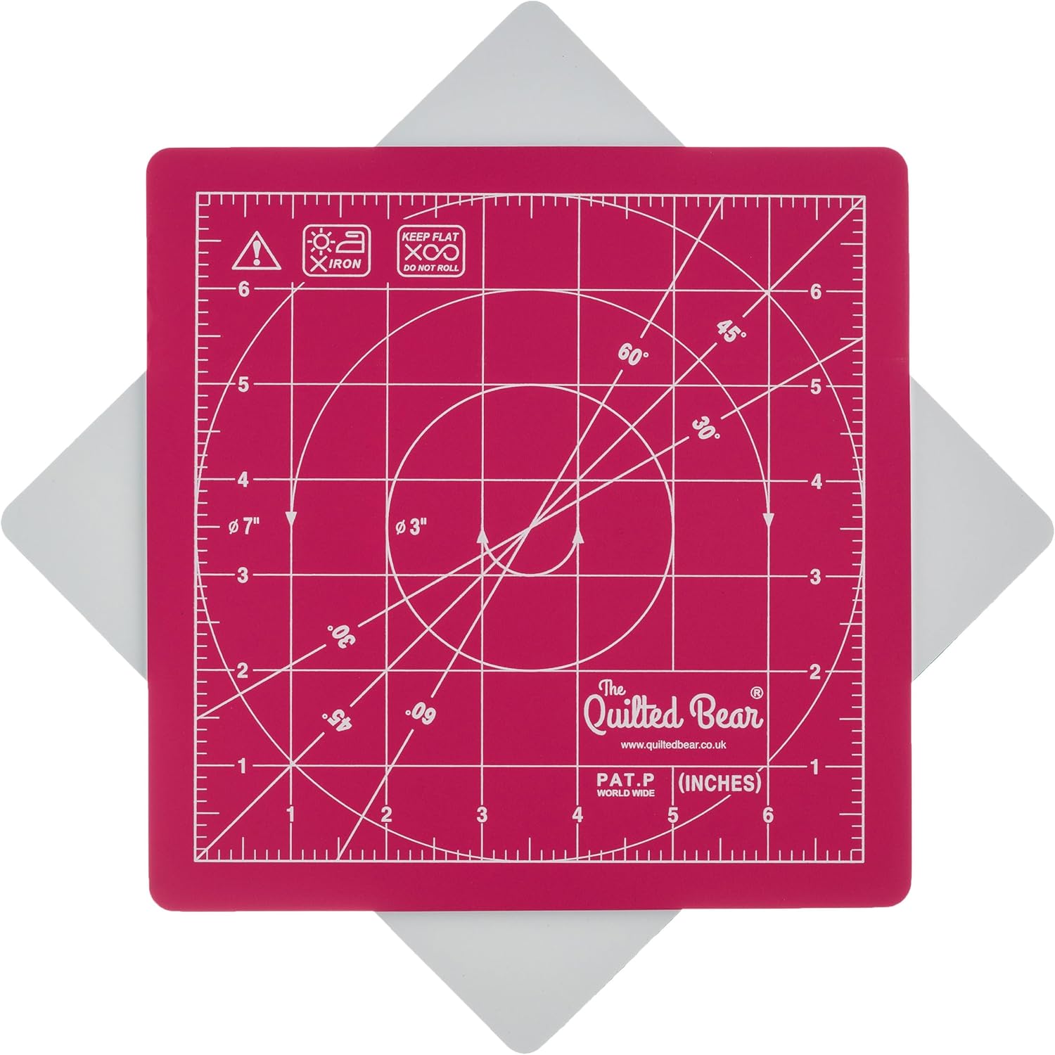 The Quilted Bear Rotating Cutting Mat 7" x 7" - Locking & Rotating Self Healing Cutting Board for Sewing, Fabric & Effortless Quilting - 360 Degree Sewing Supplies Mat for Craft Table (Pink)