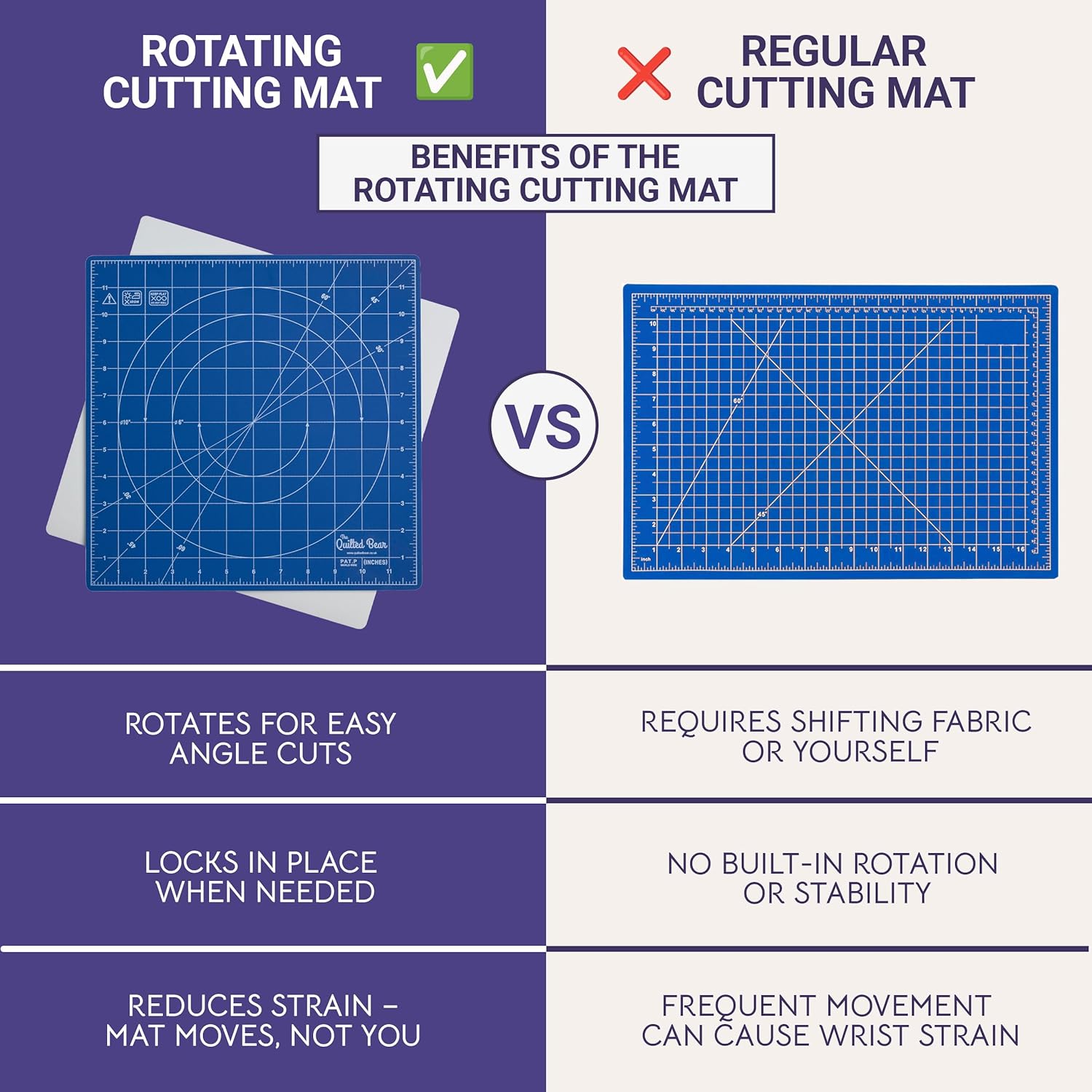 - Effortless 360Β° Rotation: Our rotating cutting mat boasts effortless rotation, rotate fabric smoothly while quilting, sewing, or crafting 360-degree rotation ensures precision when using a rotary cutter for fabric, quilting supplies or scrapbooking supplies. Cutting mat rotation reduces wrist strain.