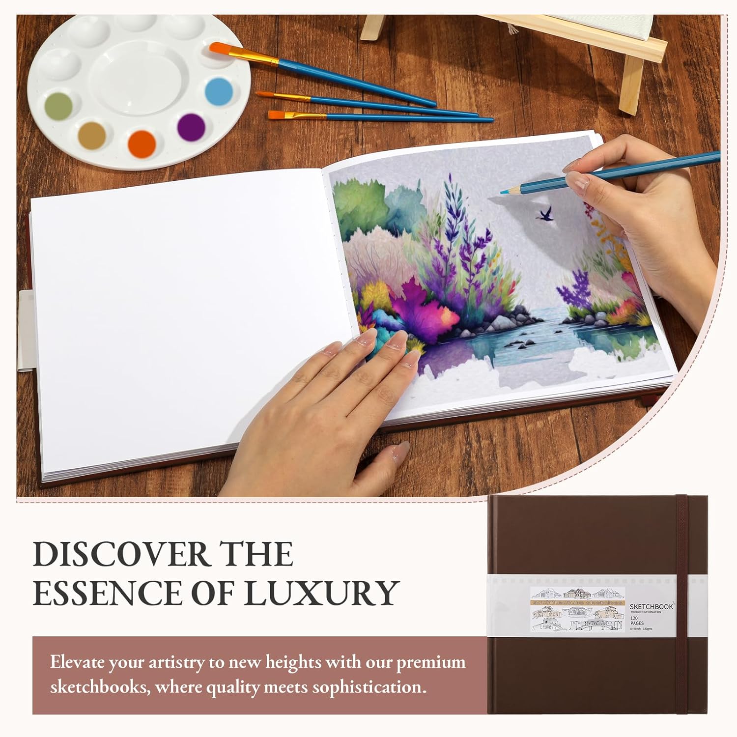 Moinchore Back to School Gifts Square Sketchbook 8 x 8 Inch Hardcover Art Sketch Book Drawing Papers 120 Pages, Mixed Media Journal Notebook with Elastic Closure Sketchbook for Drawing(Brown)