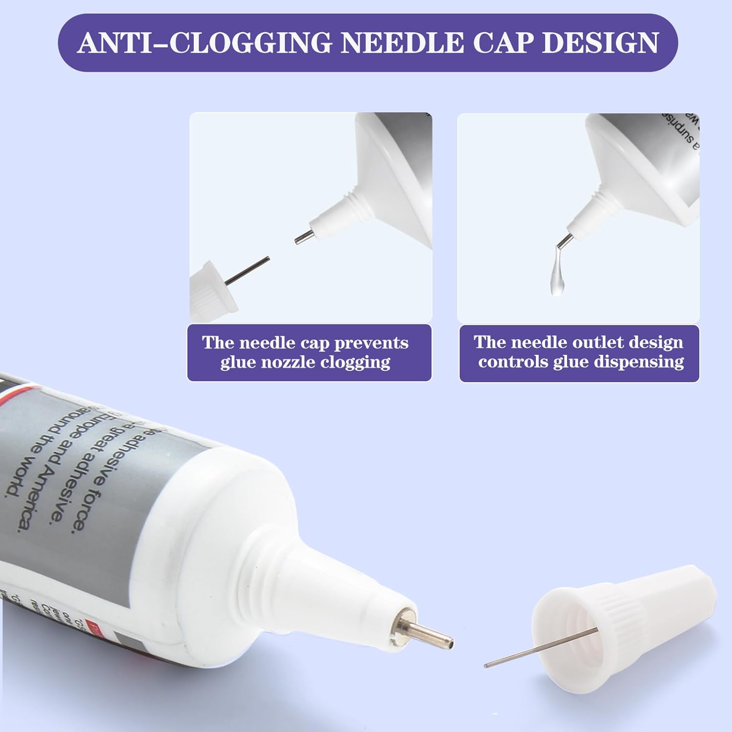 - 【Anti-clogging Cap & Precision-Tips】Rhinestone glue for crafts with needle designed cap prevents clogging, ultra-fine tip allows small adhesive glue drops well controlled. This b7000 glue clear for rhinestones is suit for fine, precise, controlled