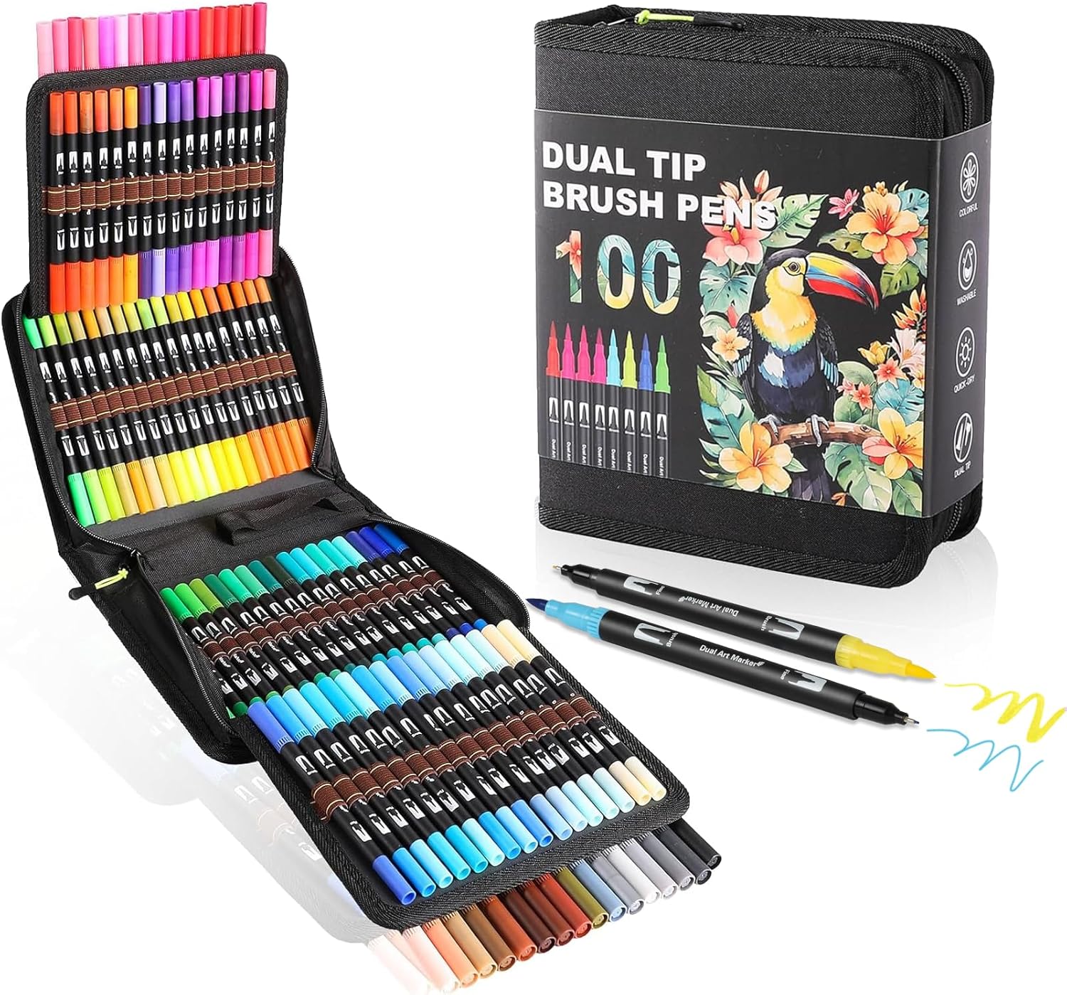 Dual Tip Markers, Double Brush Art Markers Set with Fine Tip and Brush Tip for Adult Coloring Book, Hand Lettering, Calligraphy & Drawing, Art Supplies Kit for Kids and Adults (100 Colors)