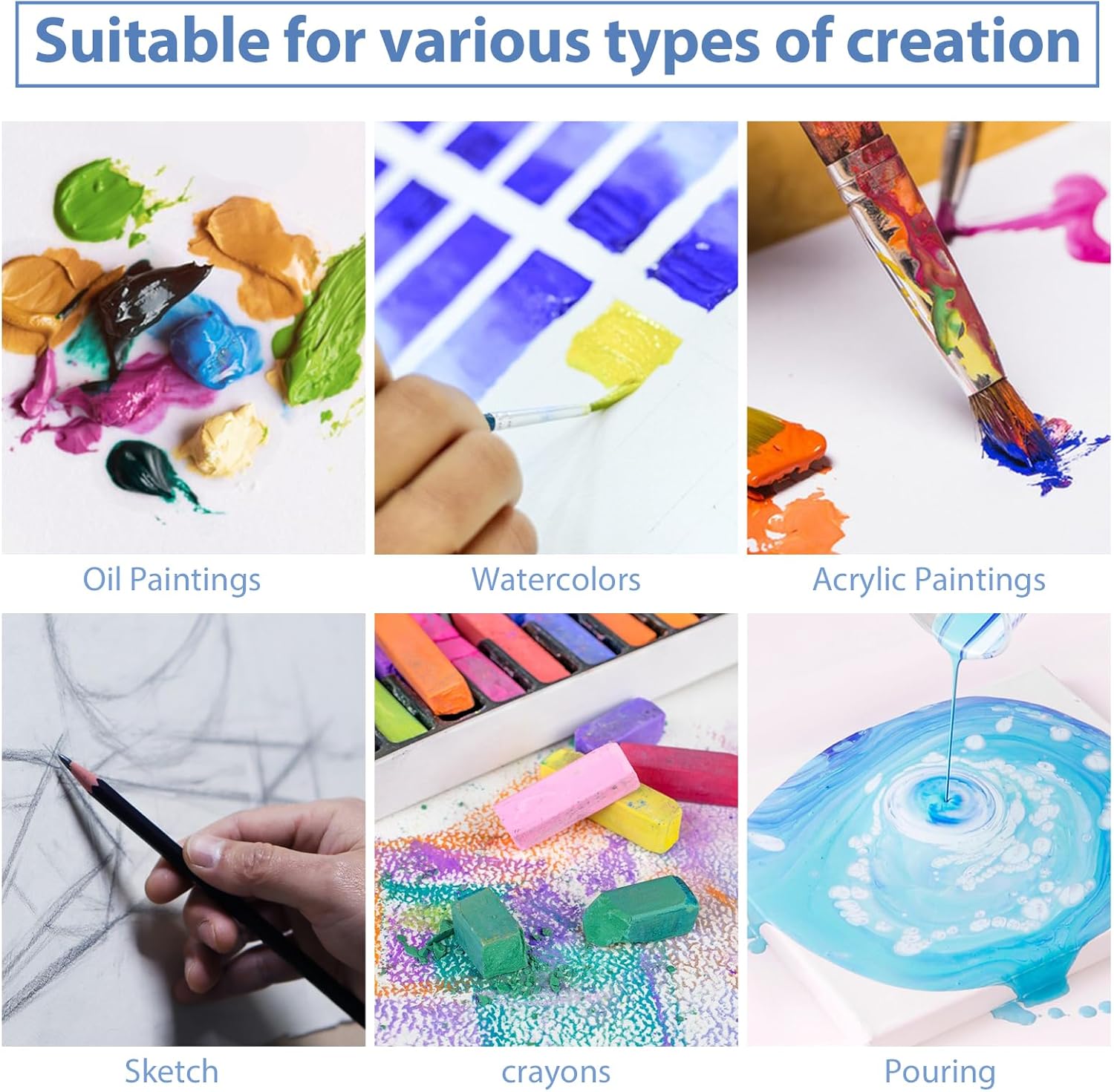 - 【Widely Used】Watercolor canvases for painting suitable for oil painting,watercolors,acrylic paintings,tempera paintings,pouring,Gouache and Tempera,etc.. Canvas bulk are also suitable for various occasions such as teaching, gatherings, home decorations, birthday decorations, etc.