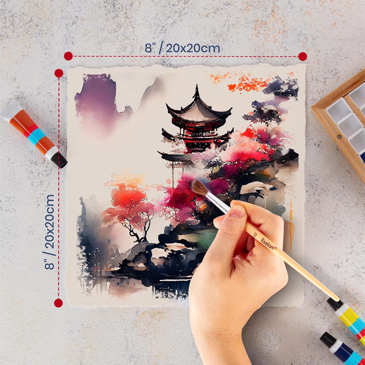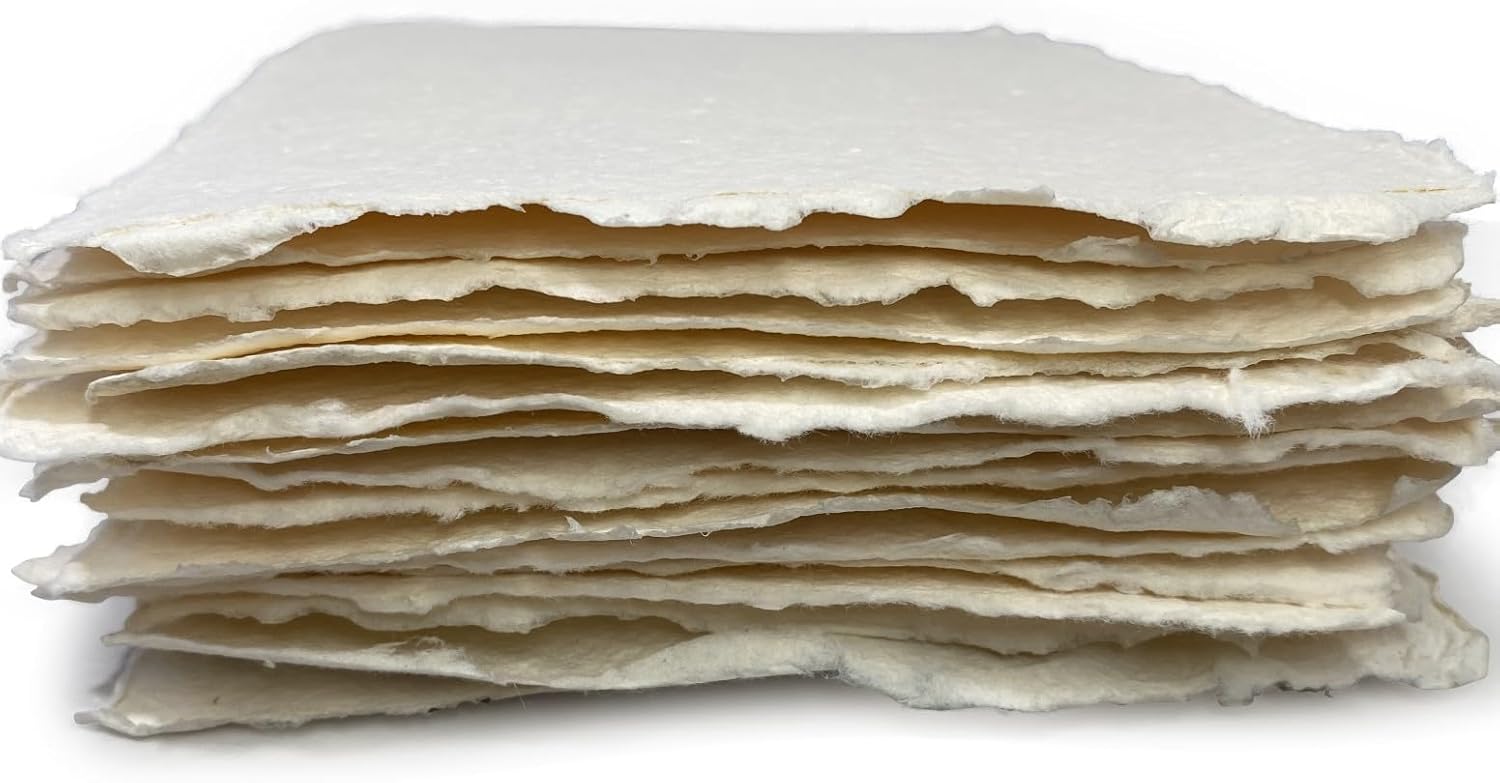 - [Multi-Media]: These one-of-a-kind handmade paper sheets are a great alternative to traditional cotton paper watercolor or writing. Supports most media like watercolor, acrylic, ink, pastel and colored pencil. 8x8" / 20x20 cm
