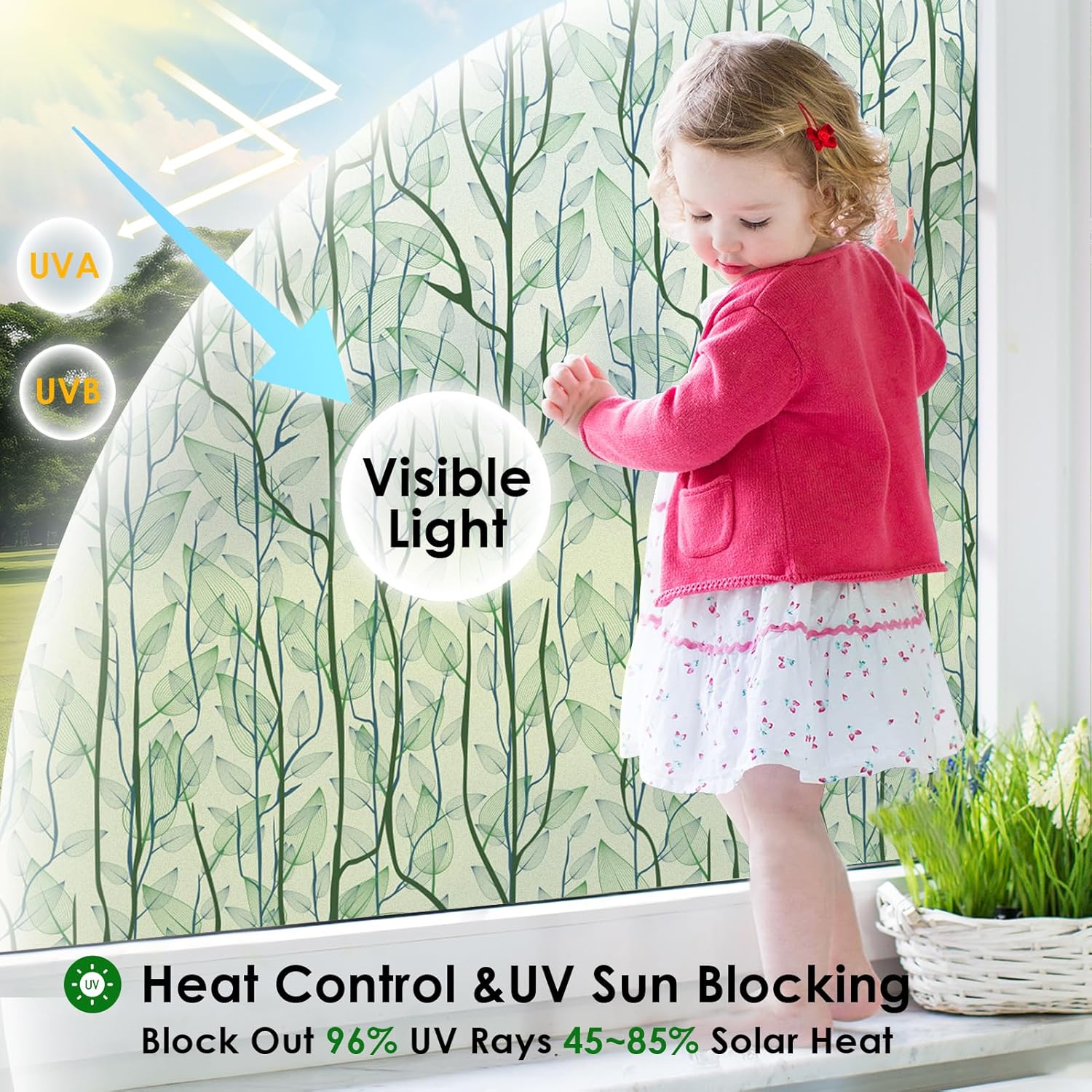 DKTIE Window Film Privacy with Installation Tools, Decorative Stained Glass Window Clings for Home, Static Cling Window Sticker for Front Door, Bathroom (Green, 17.7'' x 78.7'')