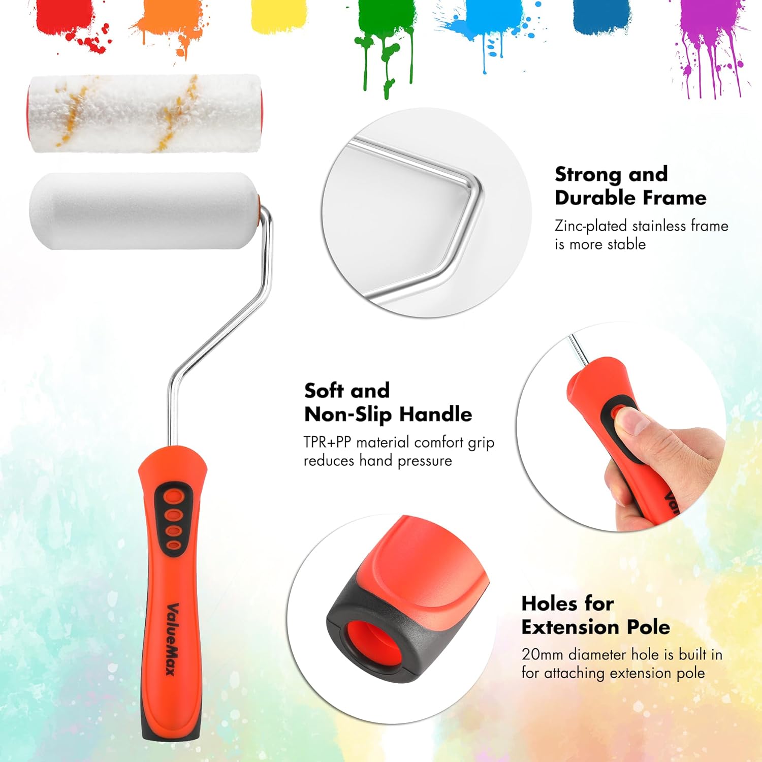 ValueMax Paint Roller Kit, 14-Piece 4 Inch Paint Roller Kit with High-Density Foam Paint Rollers, Microfiber Paint Rollers, Paint Tray for Painting Cabinets, Doors, Craft Work