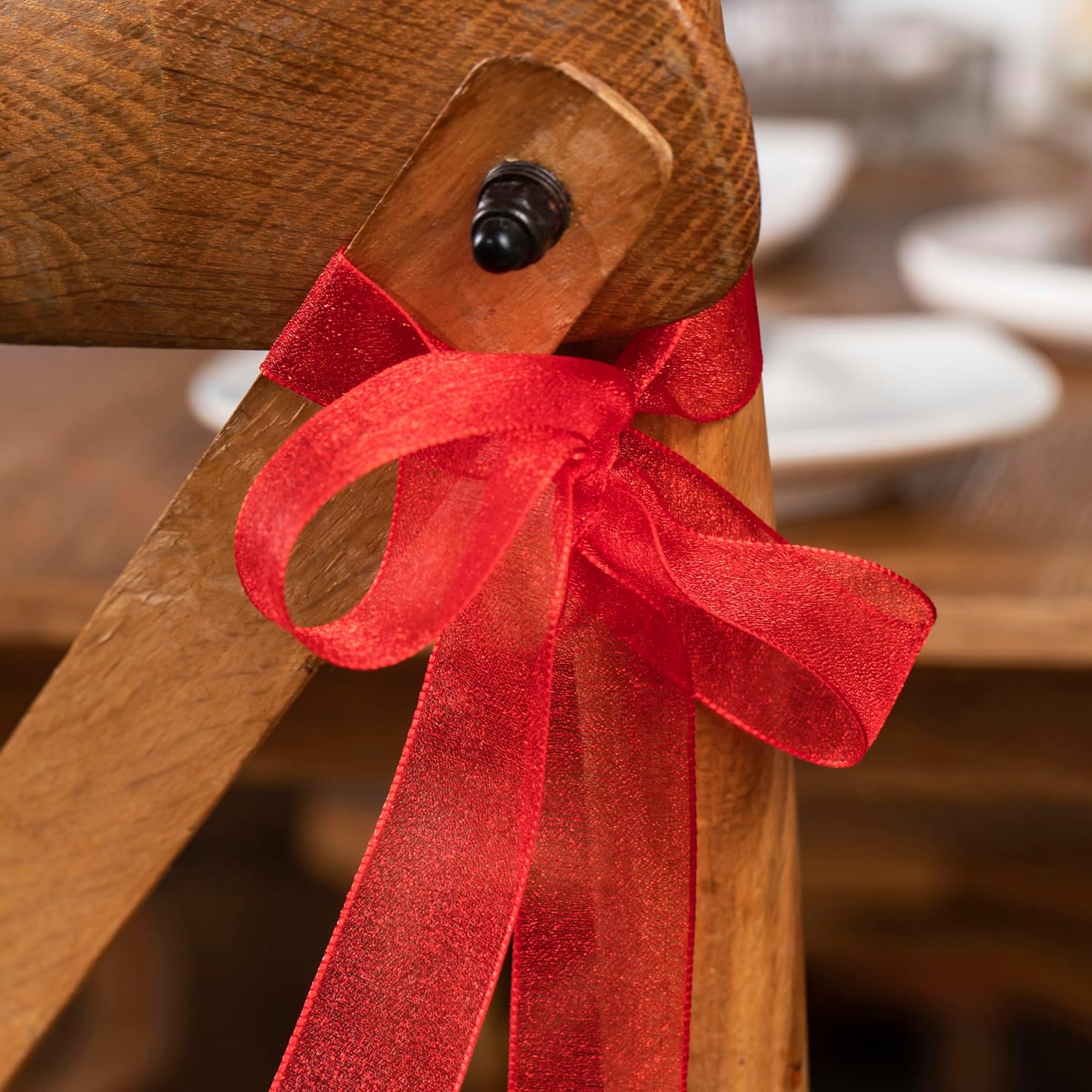 1 Inch Wide Sheer Chiffon Ribbon - Pearl Silk Woven Ribbon Suitable for Gift Wrapping, Wedding Decor, Home Decor, Girl Hair Accessories Handmade DIY (25 Yards/roll) (Red)