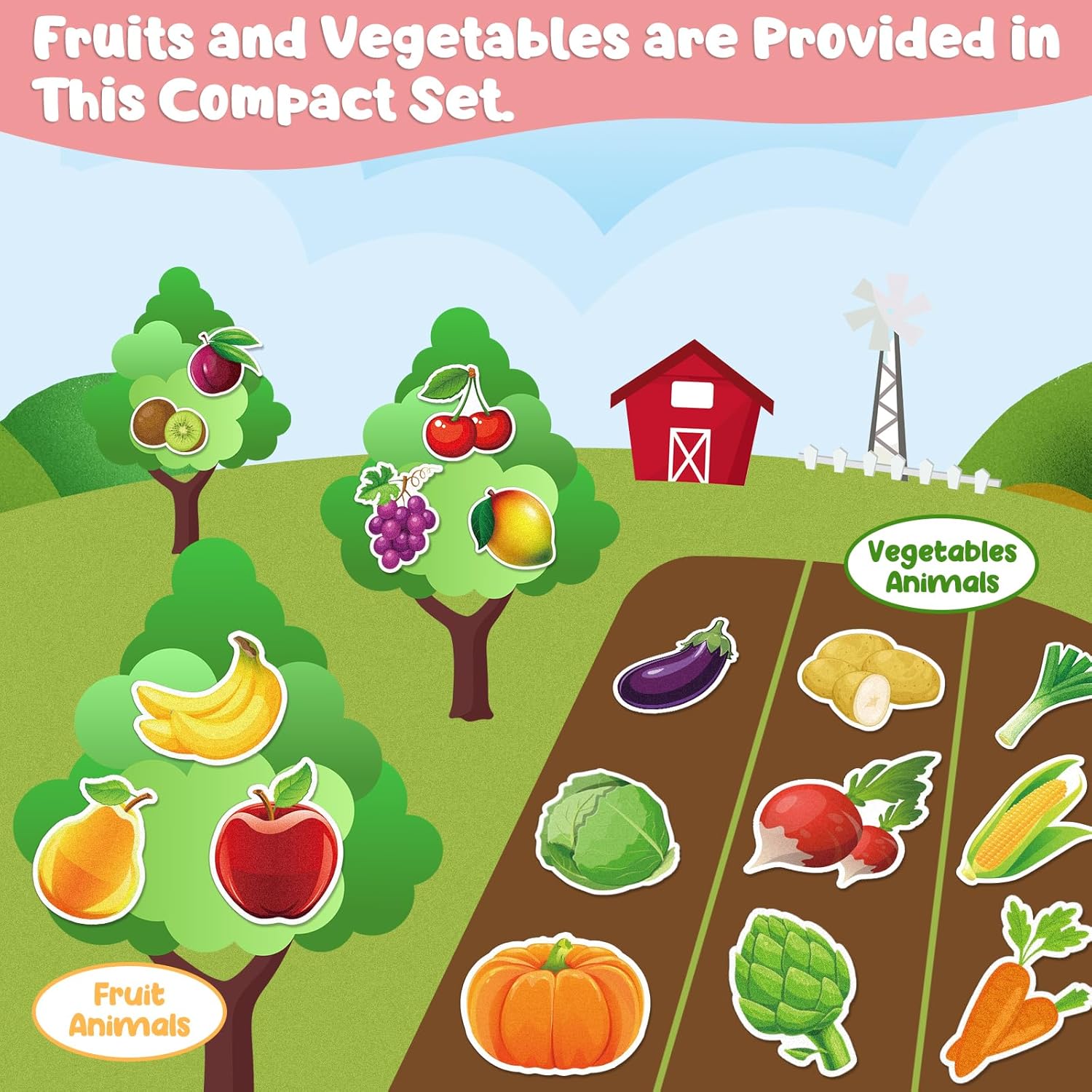 - ✨ Educational & Interactive Fun: Bright, vibrant colors and realistic designs captivate kids' attention while teaching them about fruits, vegetables, and spelling. Perfect for improving hand-eye coordination, fine motor skills, memory, and sorting/grouping abilities.
