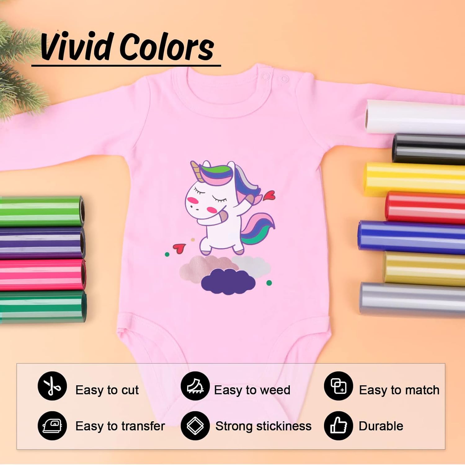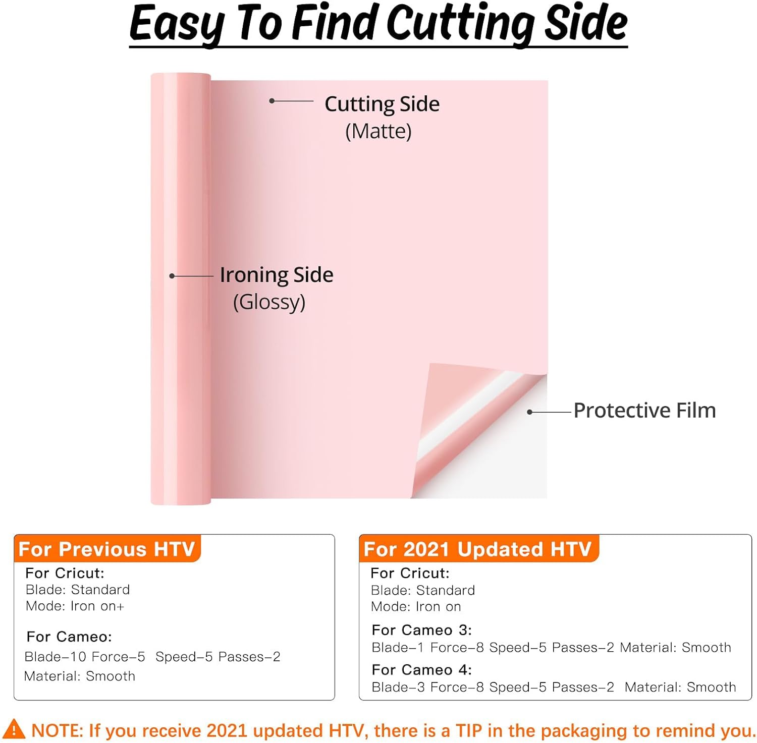 - 👕 12 inches x 5 Feet 👕 HTVRONT htv vinyl rolls are easy and convenient to cut into different size of art designs or logos or letters and perfect for 12x12" and 12x24" cutting mats. Our iron on vinyl are compatible for all cutter machines.