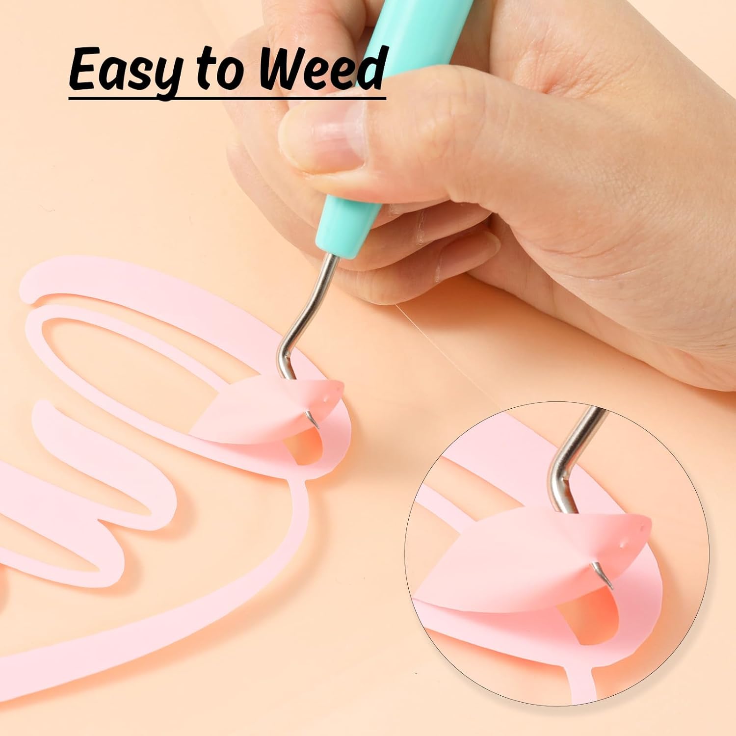 - 【EASY TO CUT & WEED & TRANSFER】 Our premium quality heat transfer vinyl will save your time which you may waste on each image or letter, because you can cut and weed easily through the designs just right.The iron on vinyl is sensitive to temperature and pressure, which can be heat transferred on any t-shirt easily.