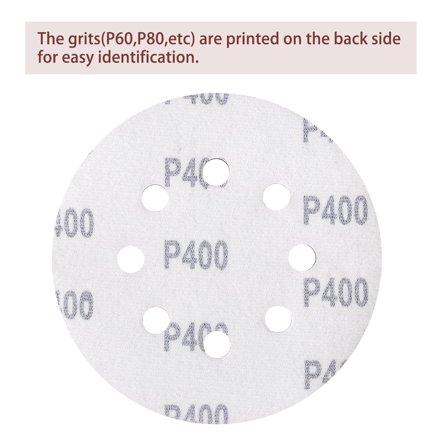 - 【Easy to Identify】- The grits(P60,P80,etc) of the sanding discs are printed on the back side for easy identification.